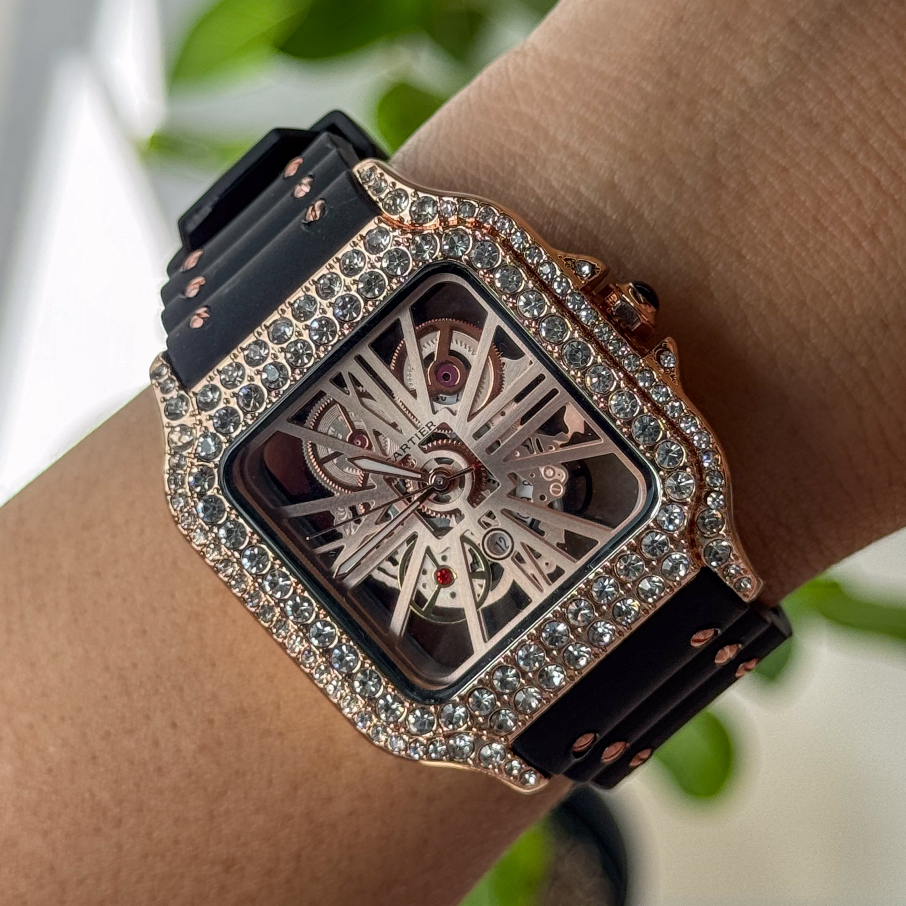 Un reloj delicado y sofisticado que combina lujo sutil con un diseño moderno. Su carátula esqueletada ⚙️ en tono oro rosa 🌸 con cuadro interno blanco 🤍 crea una armonía elegante y luminosa que resalta cada detalle con feminidad.