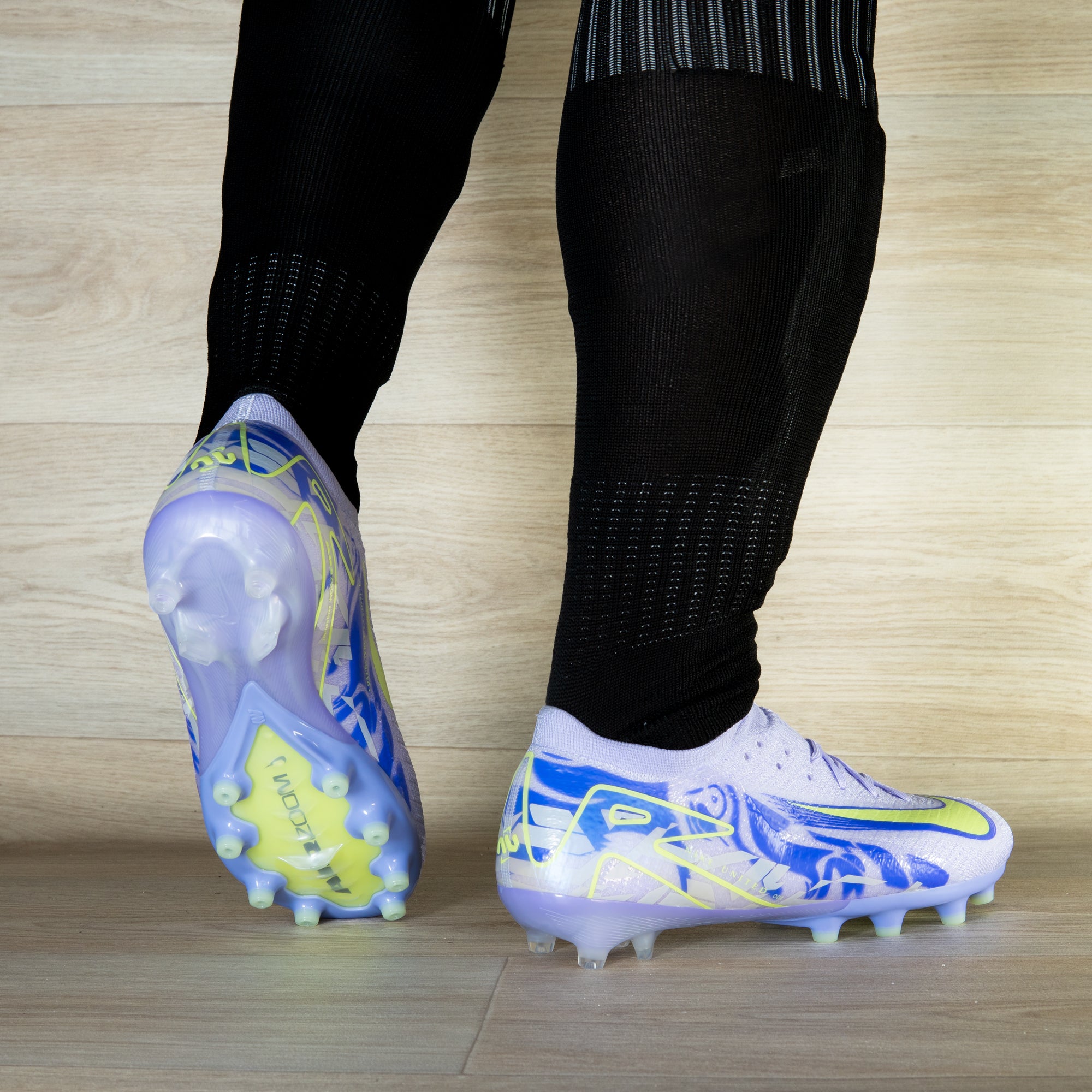 Un colorway que mezcla lo suave del lila con el golpe visual del azul eléctrico. Detalles en verde neón que marcan el ritmo.
