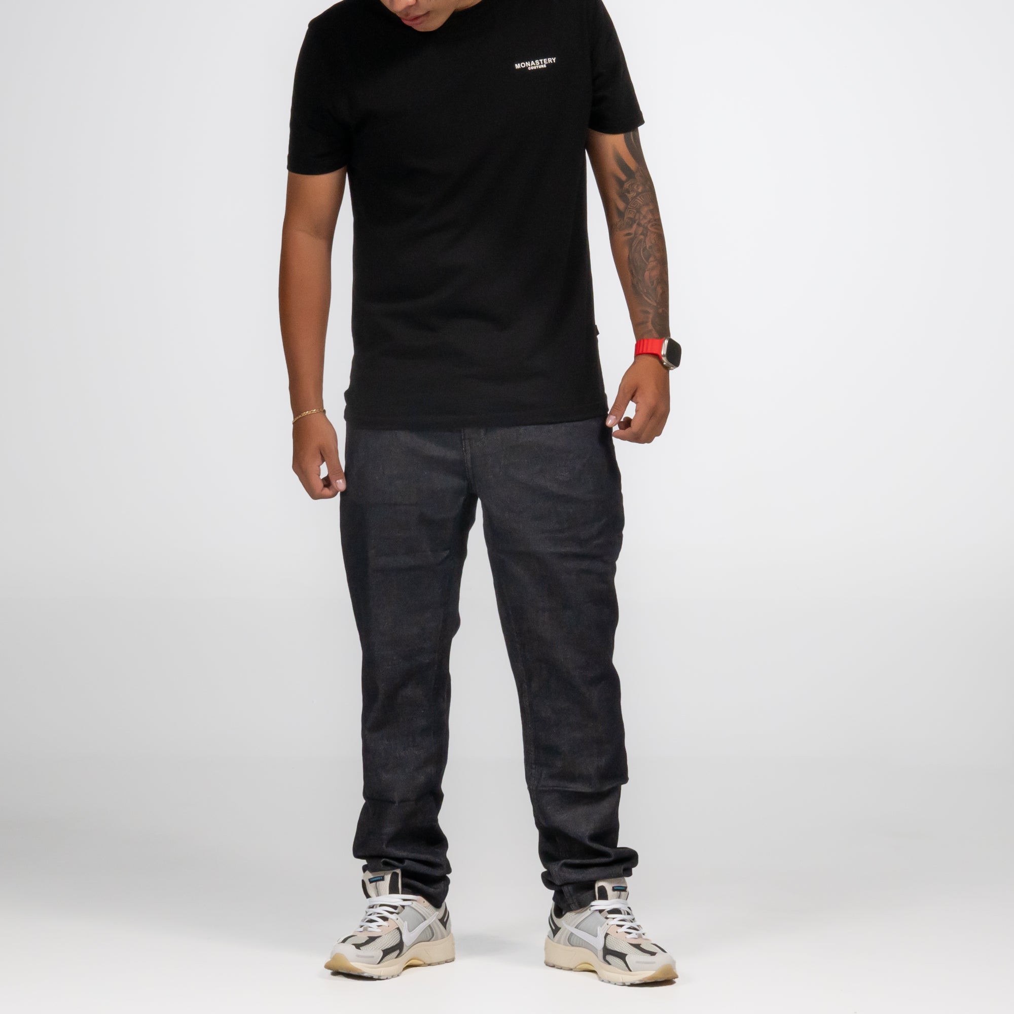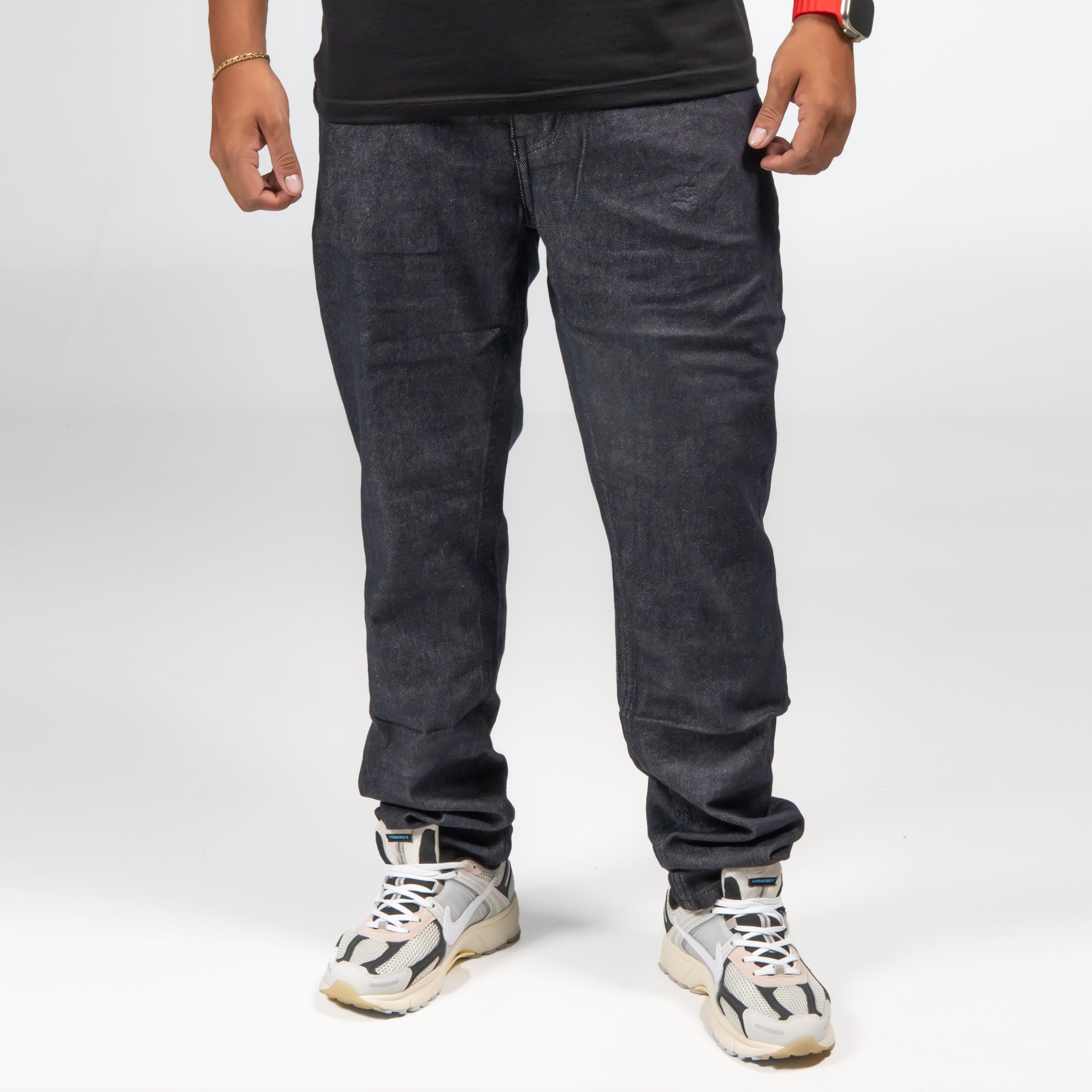 Jeans de color azul índigo oscuro, con textura cruda y firme. Su diseño limpio y sin desgastes transmite una estética elegante y moderna, ideal para quienes buscan un look sofisticado pero versátil.