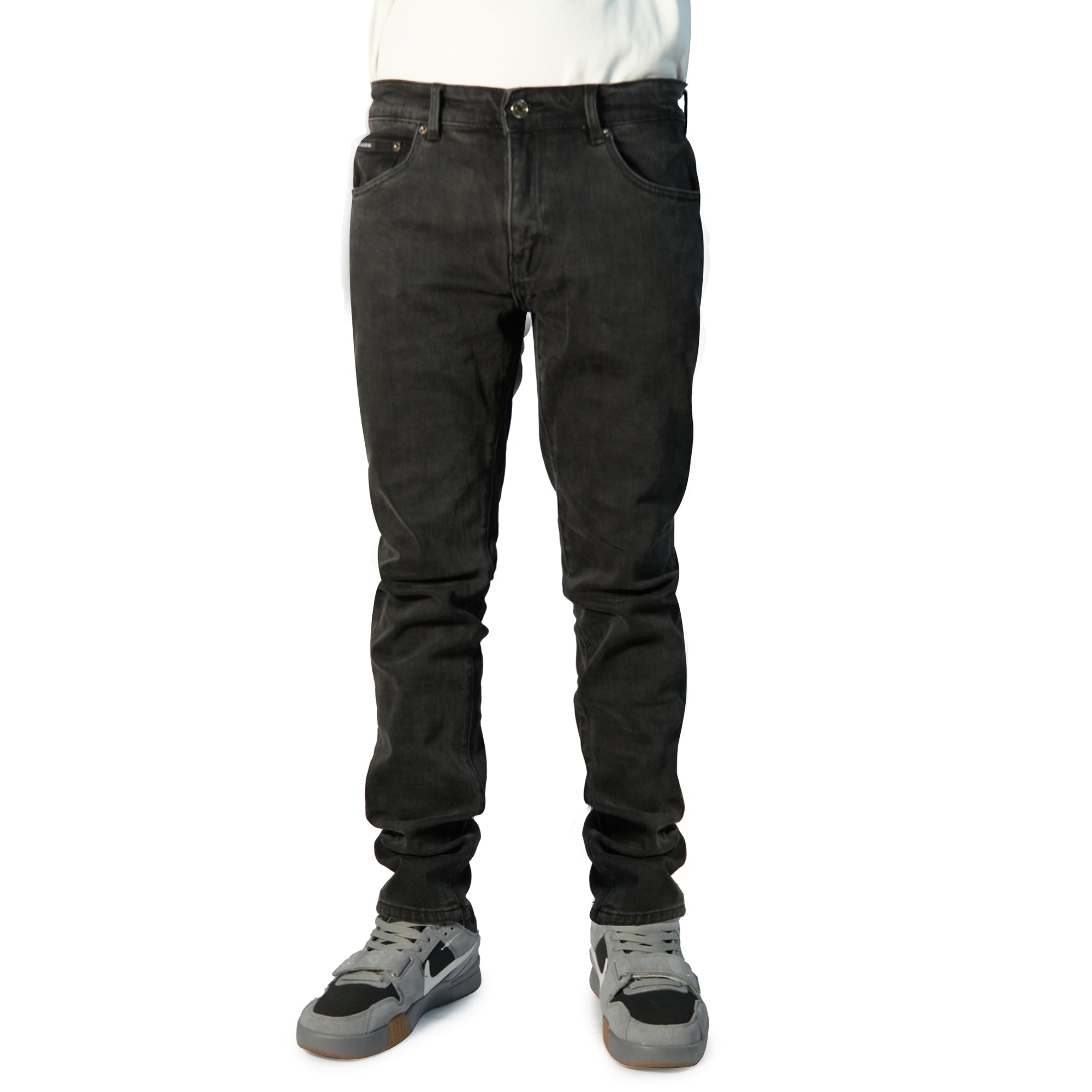 Jeans de corte slim en mezclilla gris oscuro con tono cercano al negro. Diseño limpio y minimalista, sin roturas ni desgastes, ideal para un look pulido y versátil.