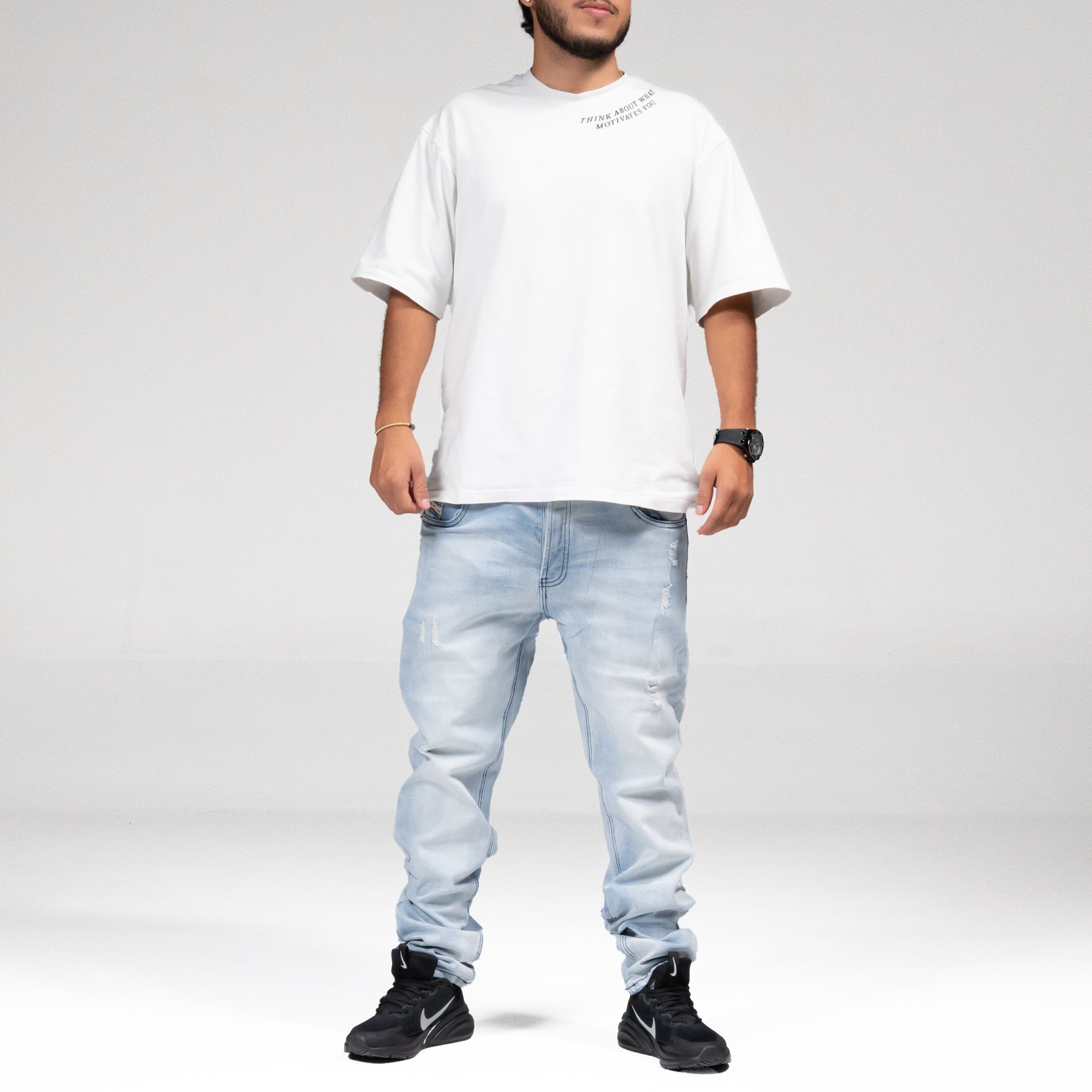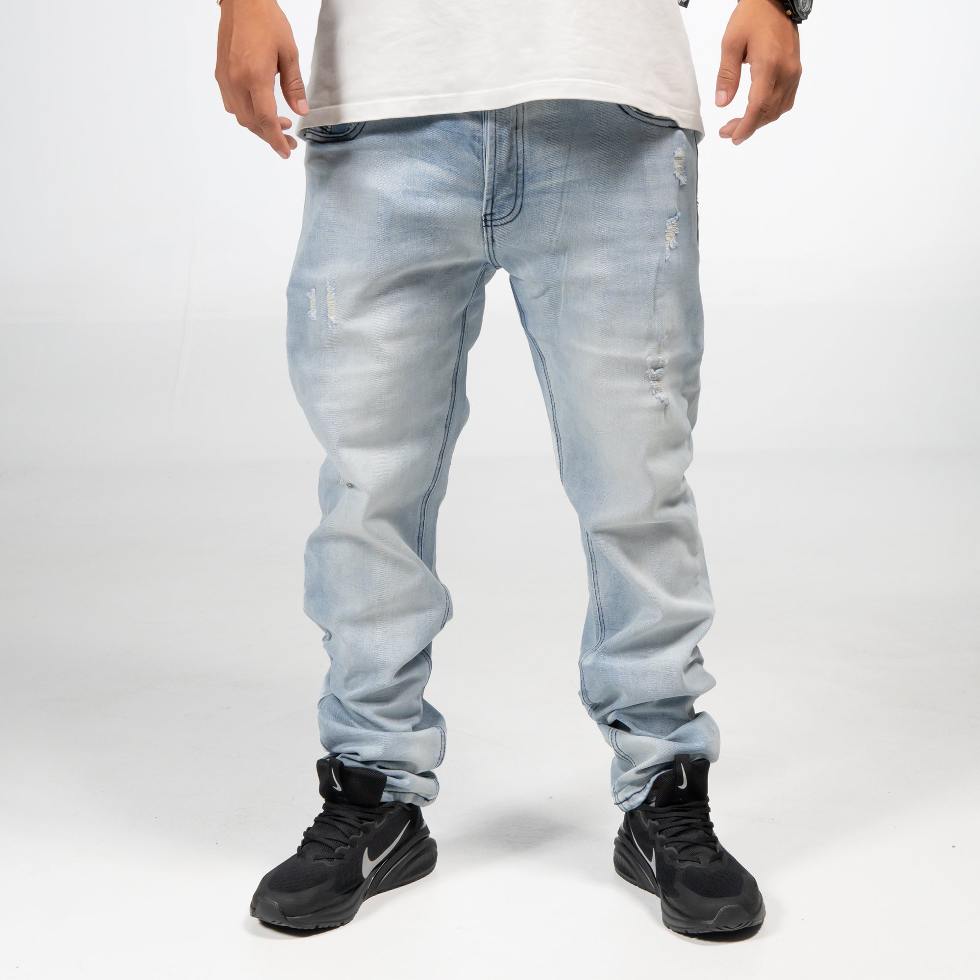 Jeans Ajuste Entallado Azul Muy Claro con Desgaste Marcado