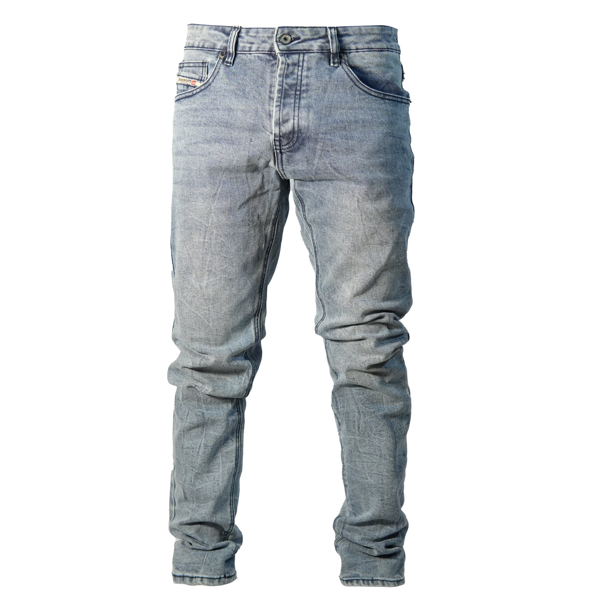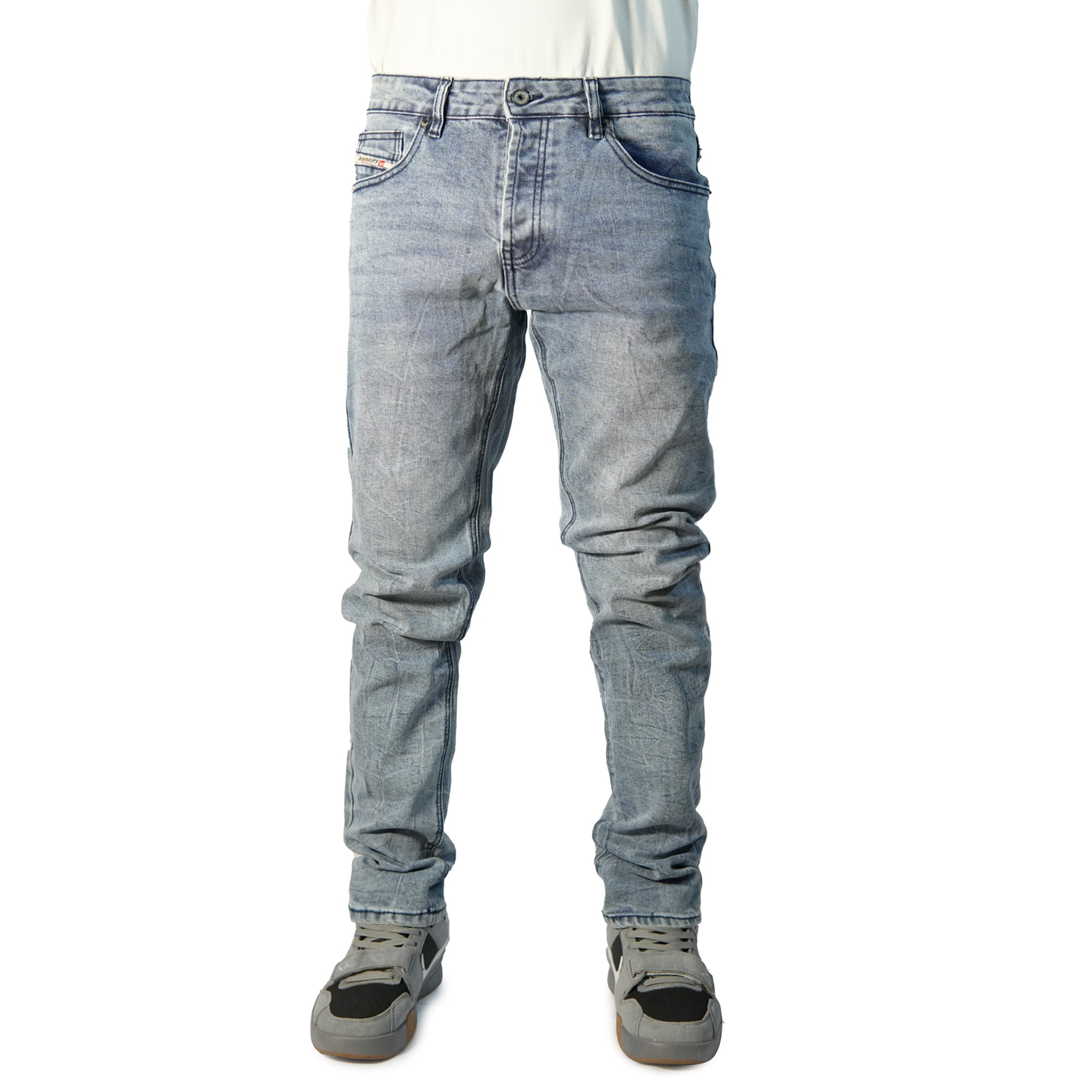 Jeans de corte entallado en azul claro con un acabado desgastado sutil. Un estilo fresco y moderno, cómodos para el uso diario. Fabricados por D1ESEL con atención al detalle.