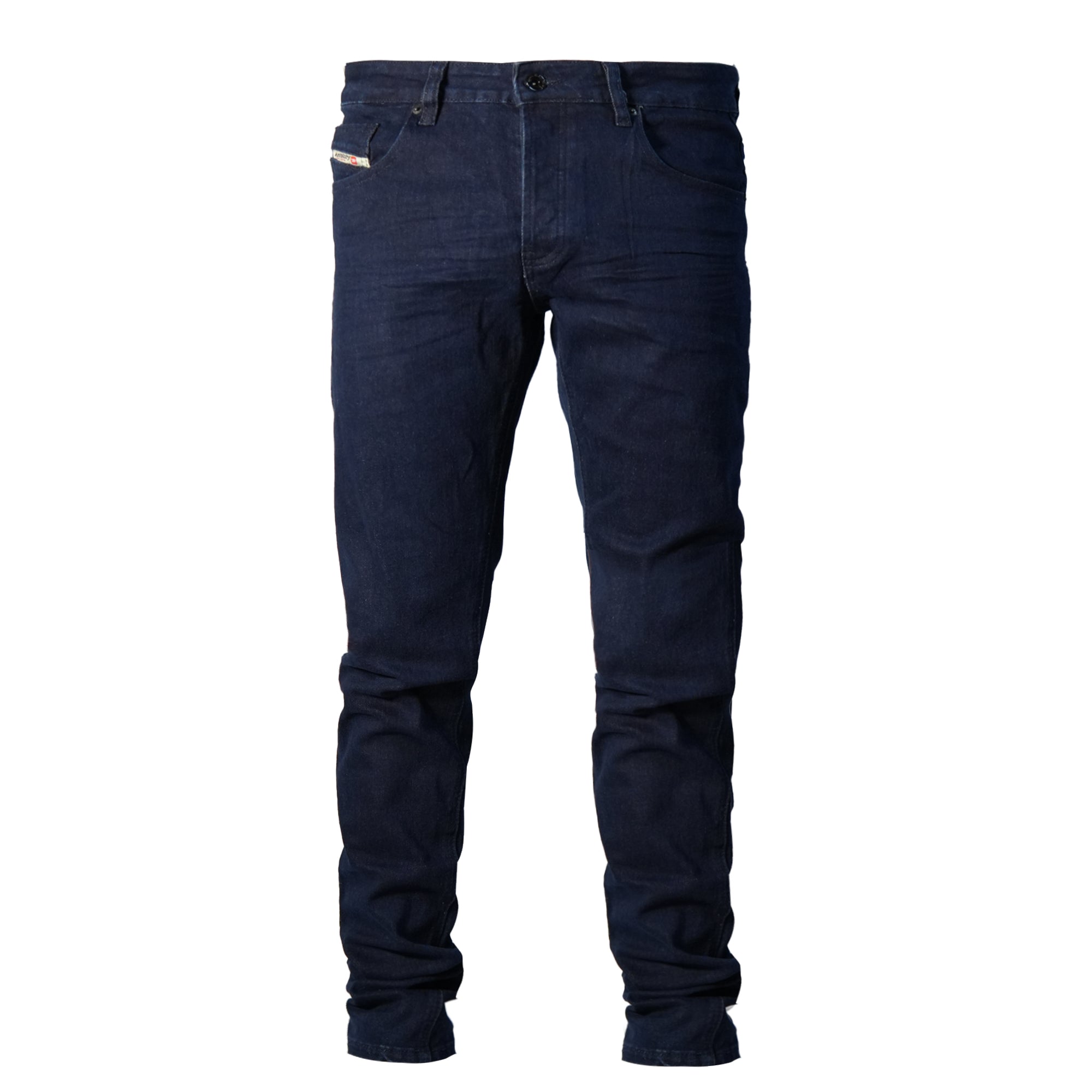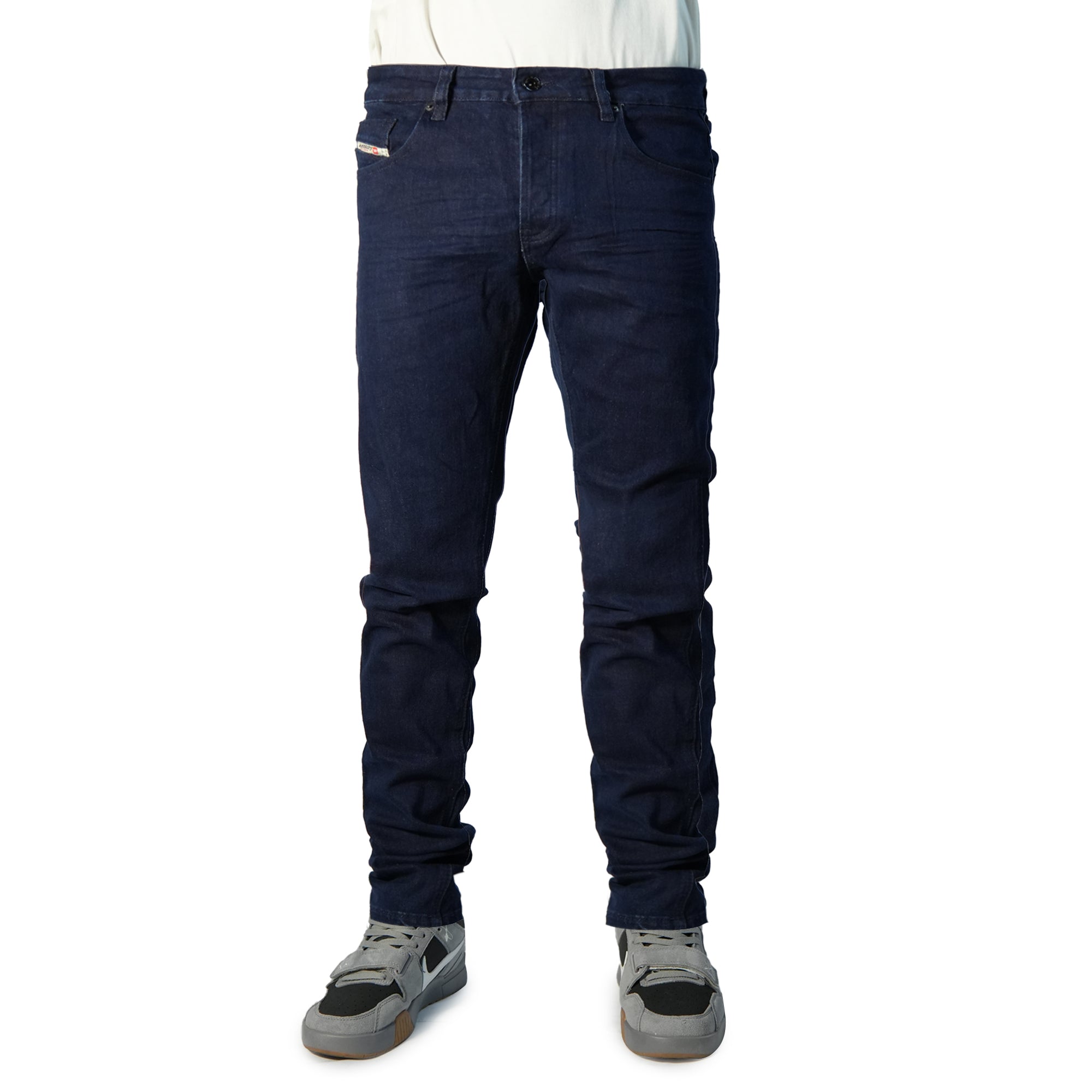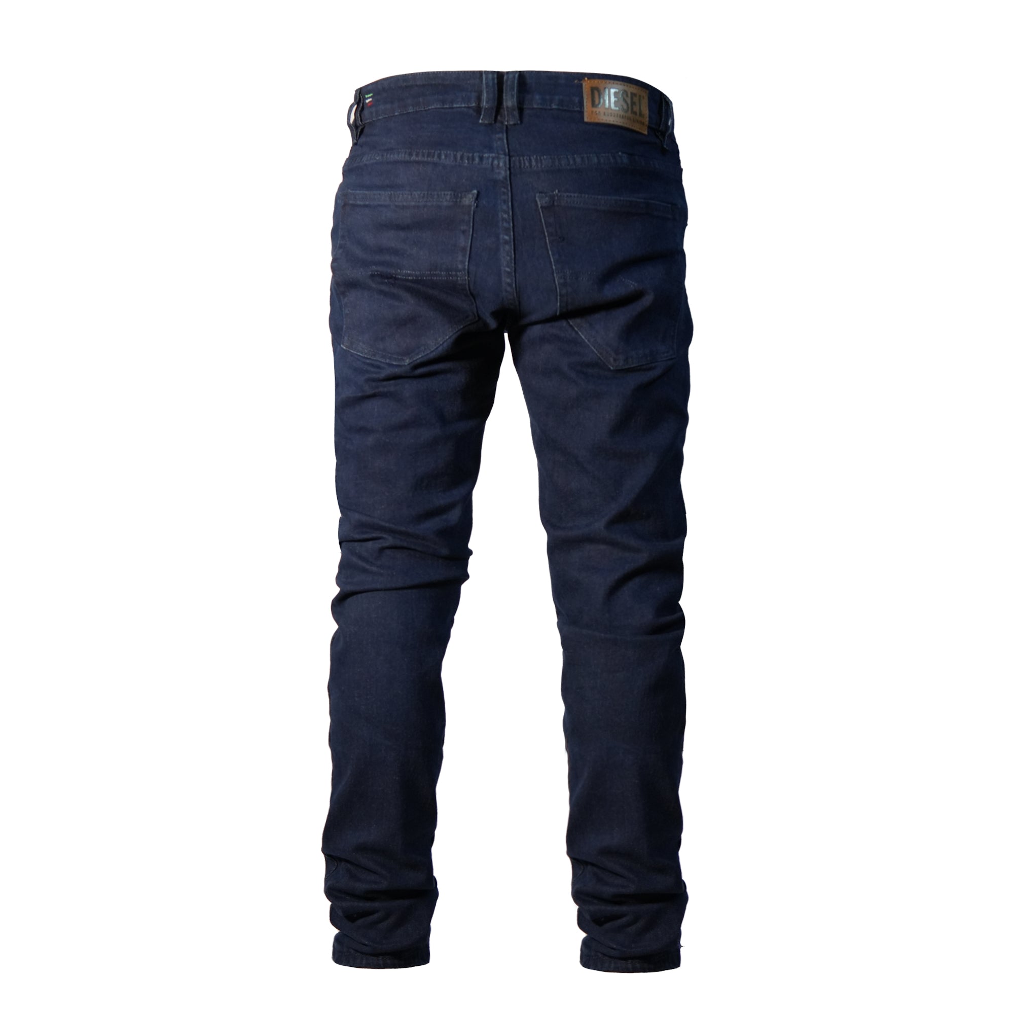 Jeans Diesel de corte entallado en azul oscuro con acabado desgastado sutil, como se muestra en la imagen. Diseñados para un estilo moderno y urbano, ofrecen un ajuste cómodo que estiliza la figura sin ser demasiado ceñidos, manteniendo la calidad y el diseño característico de Diesel.