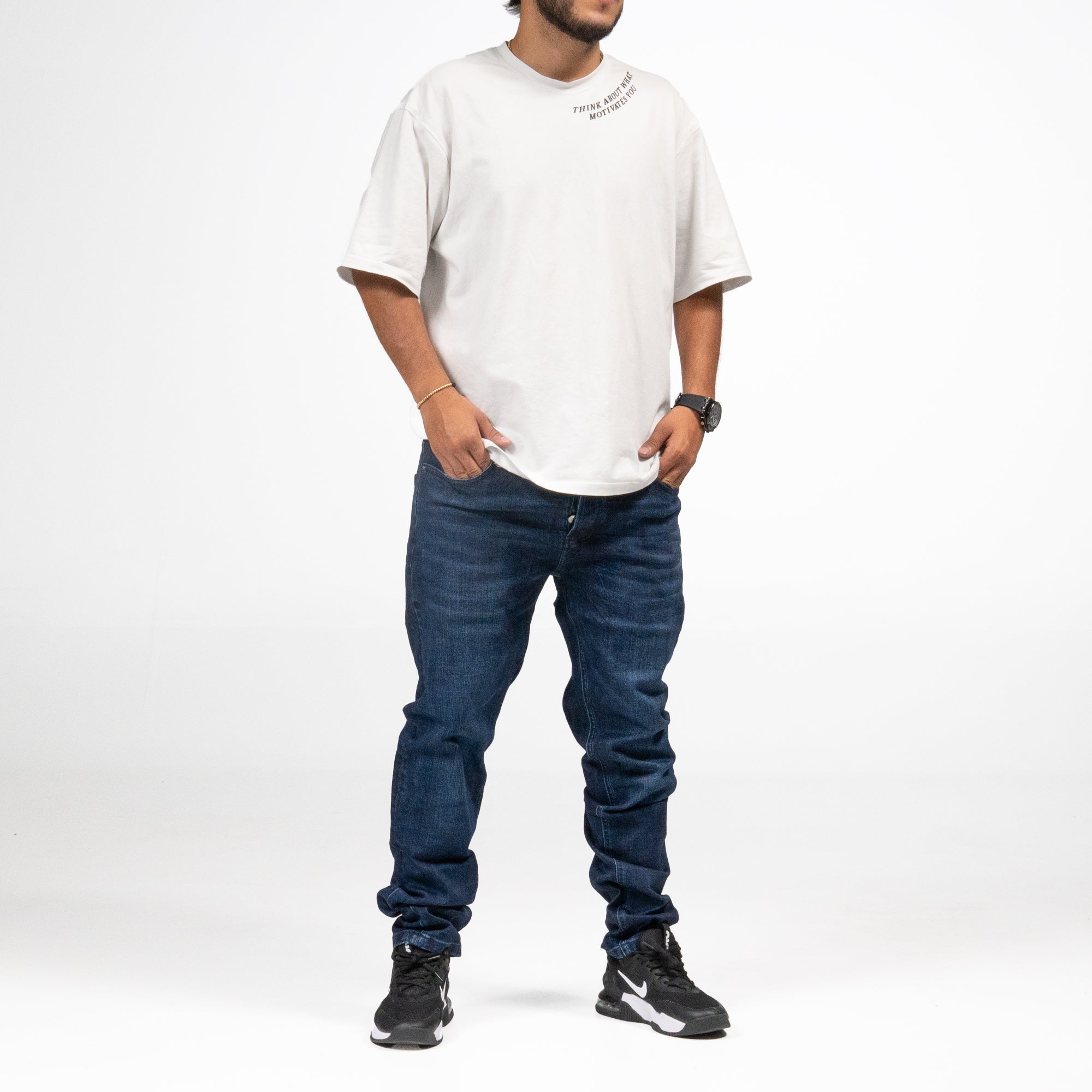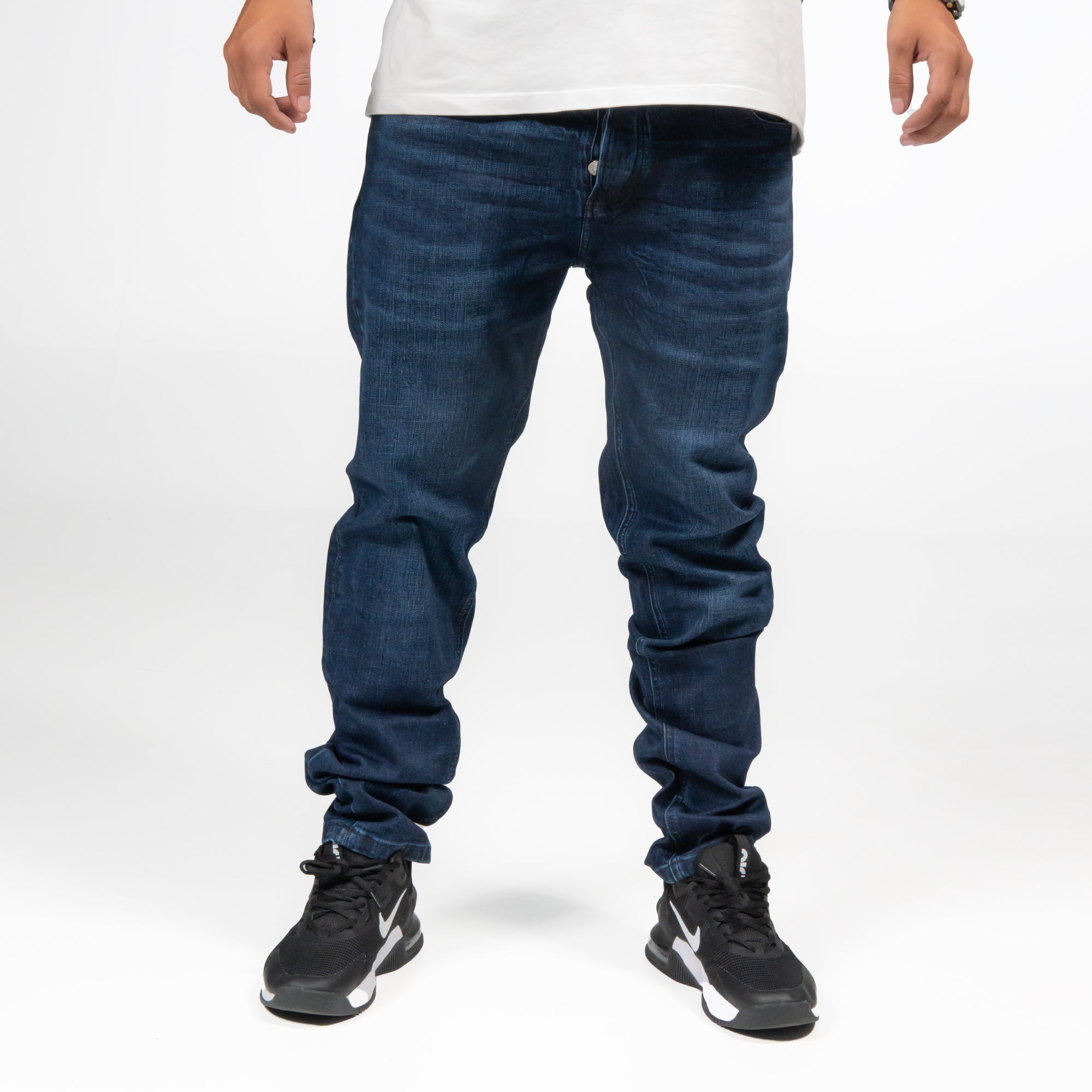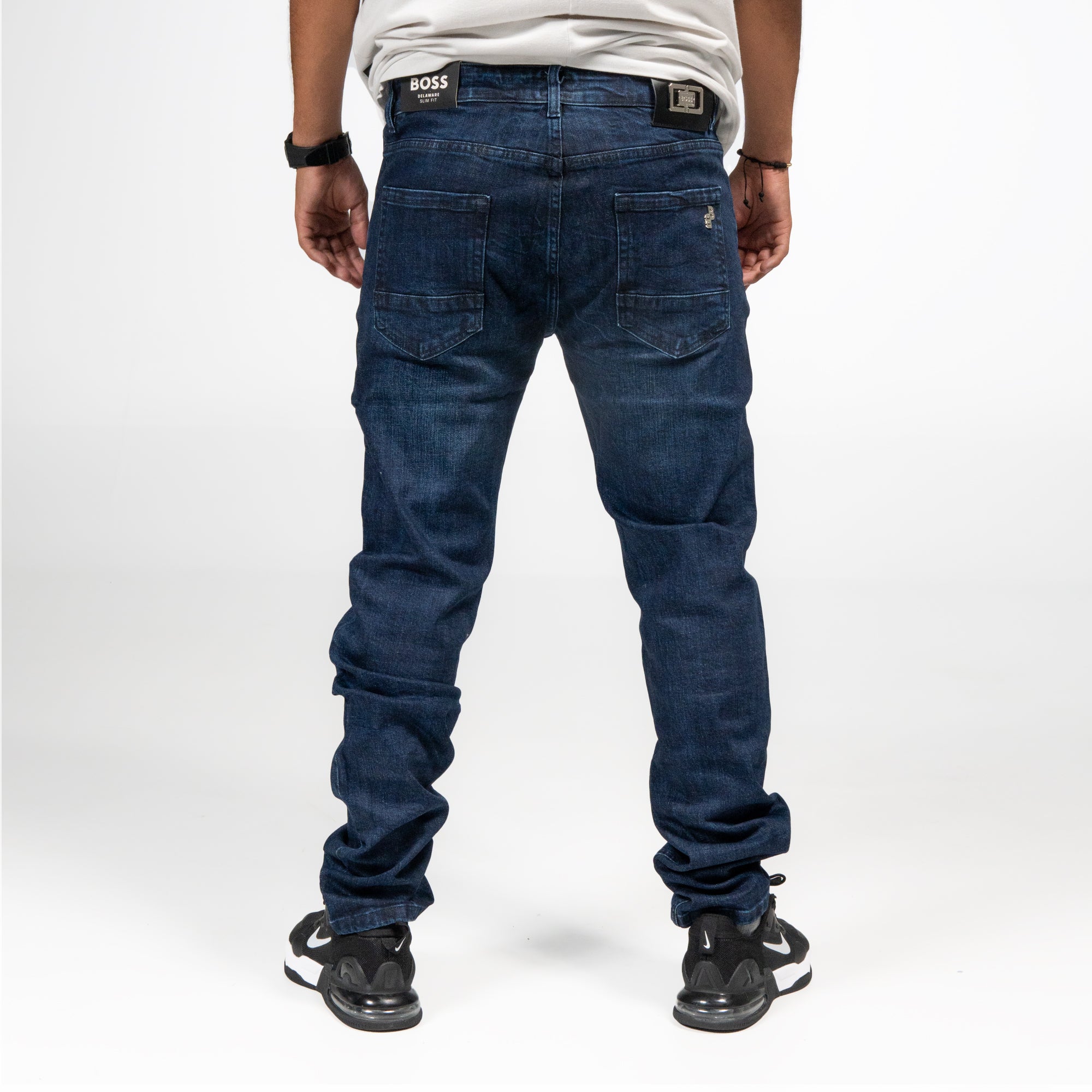 Jeans de corte recto en azul oscuro, ideales para un estilo clásico con un toque actual.
