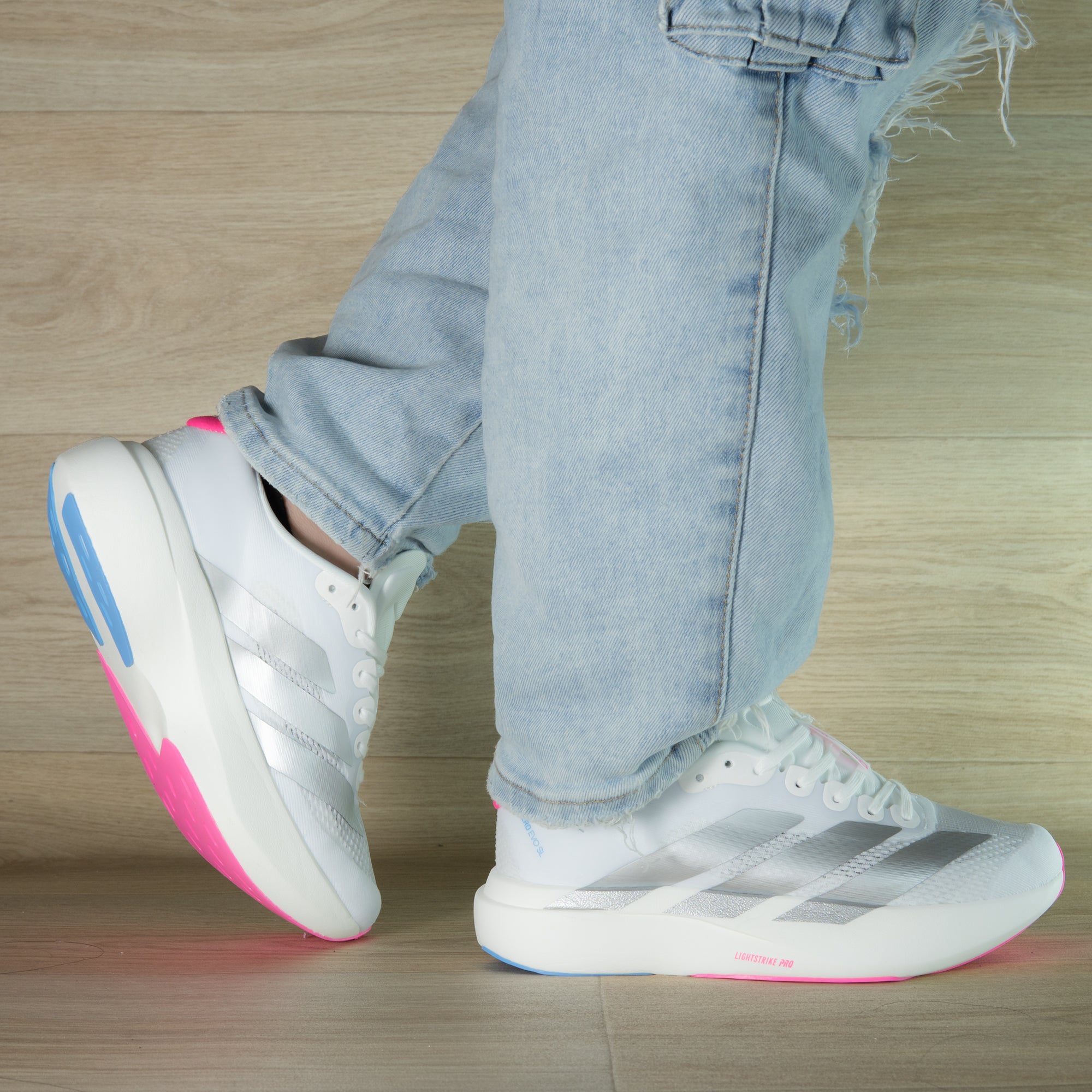 El AD1D4S EVO en blanco con detalles fucsia combina estilo audaz con tecnología avanzada para quienes quieren destacar en cada paso, sin perder comodidad ni velocidad.