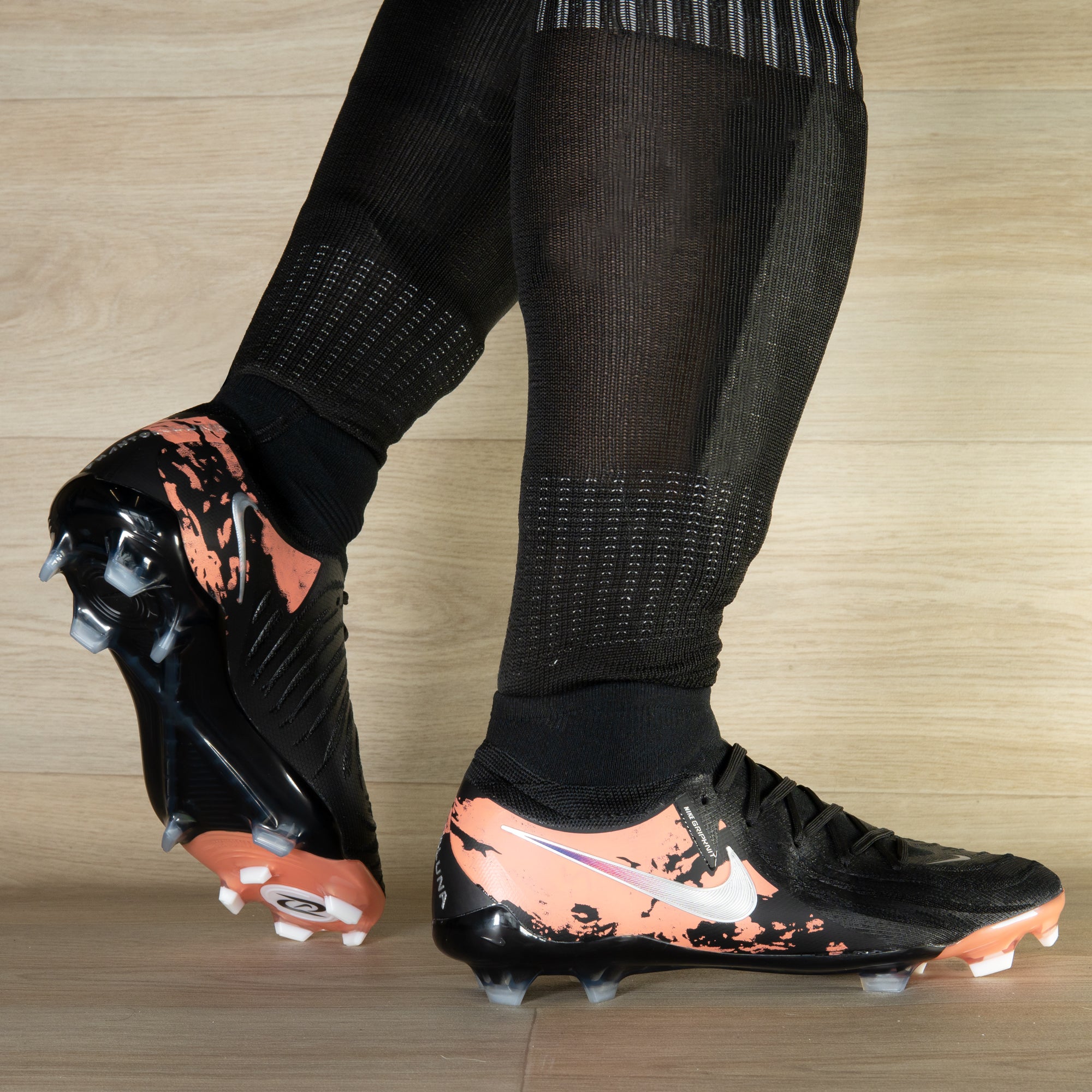 El Mercurial 15 Elite bota – Negro Fuego combina la profundidad del negro con detalles en salmón que resaltan en cada movimiento. Un guayo para jugadores que prefieren un estilo sofisticado, con la energía y el fuego para dominar la cancha.