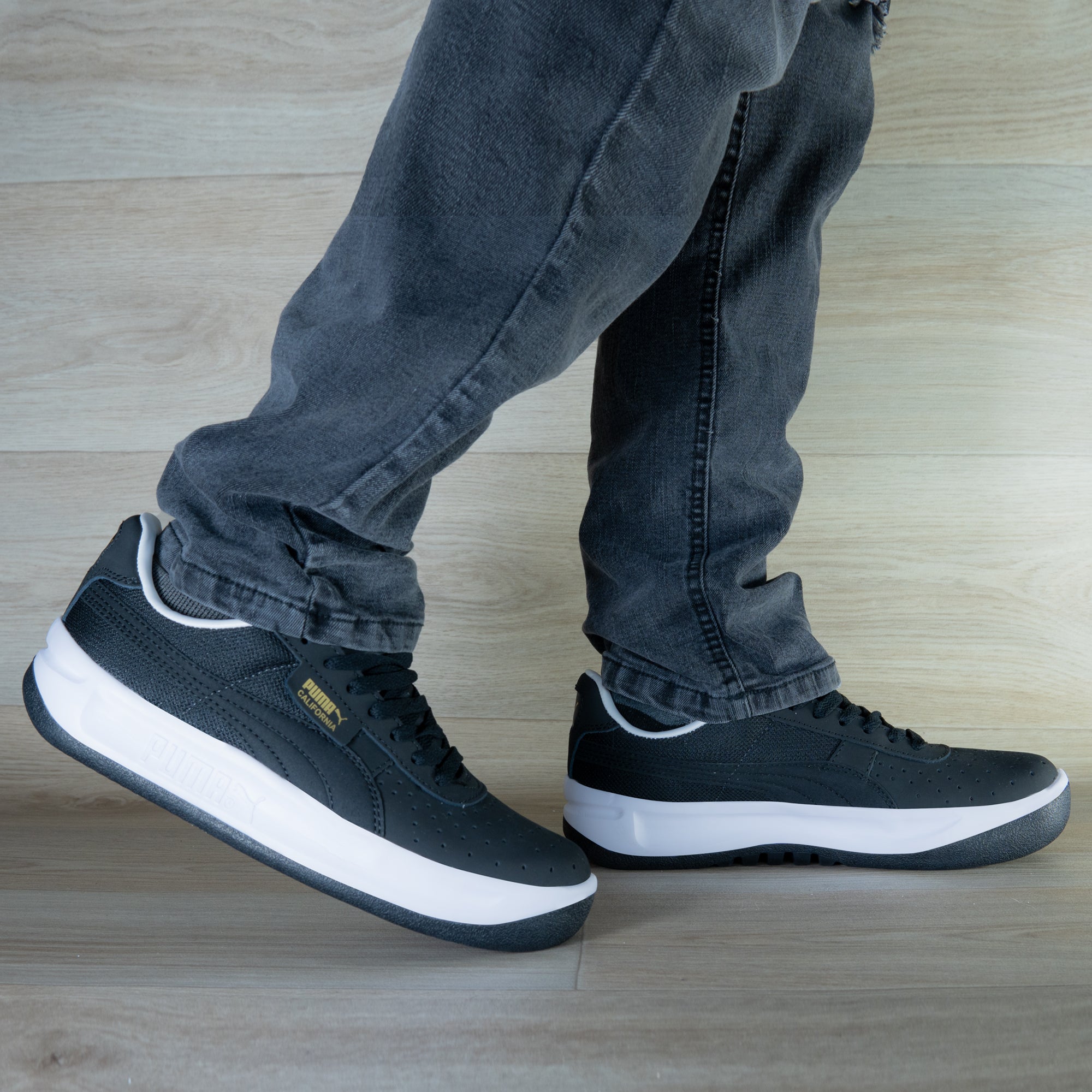 Silueta clásica, presencia total. El C4LIF0RNI4 en negro con blanco es para quienes pisan firme con elegancia discreta.
