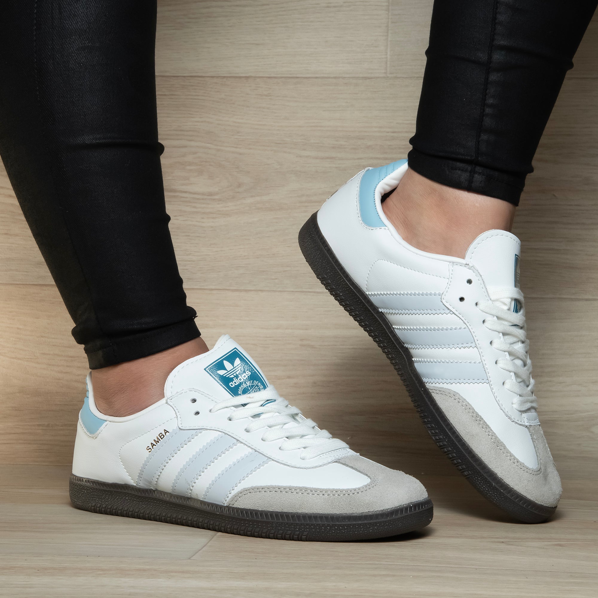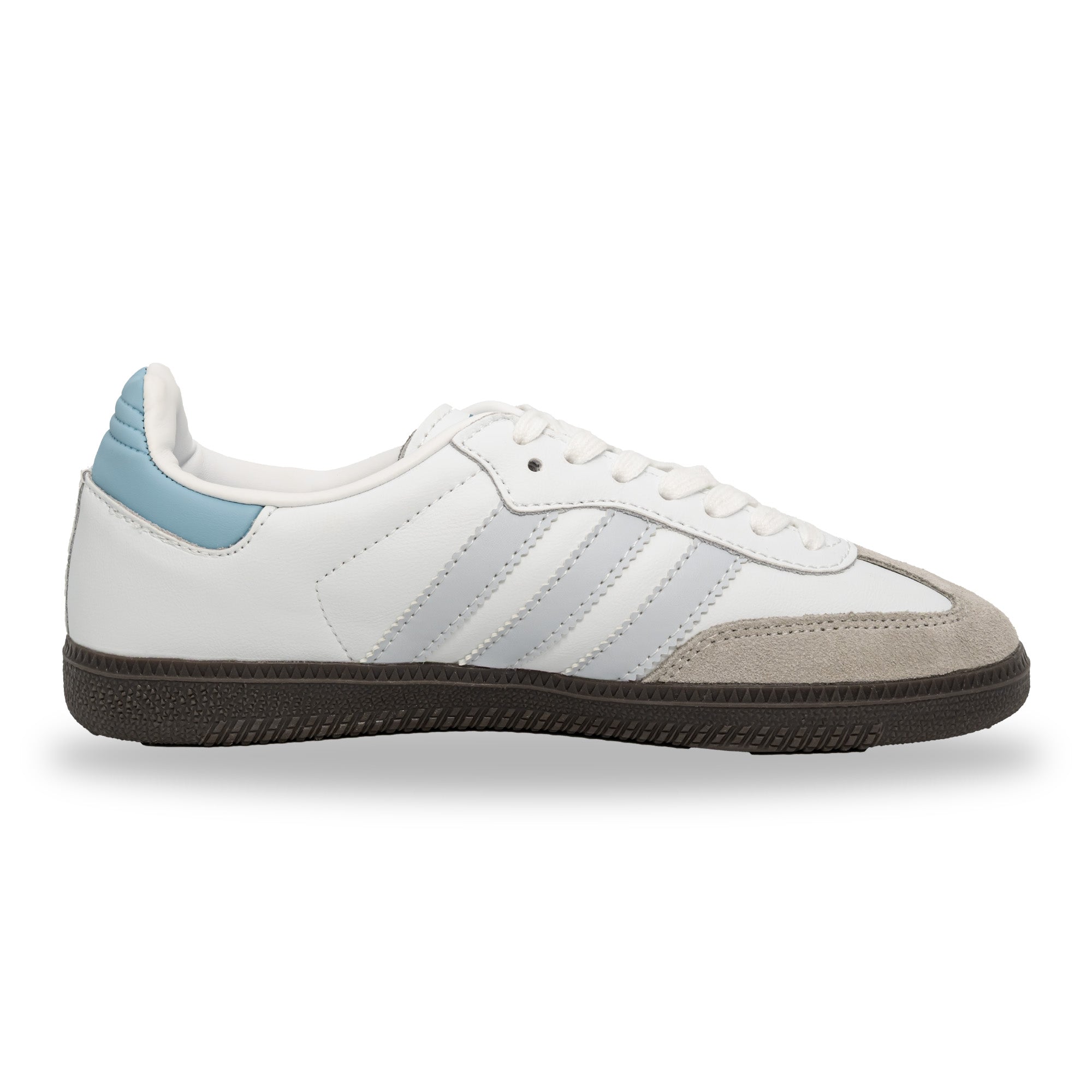 Perfecto para quienes combinan lo clásico con lo auténtico. El SAMBA blanco con azul se adapta a tu ritmo y a tu outfit.