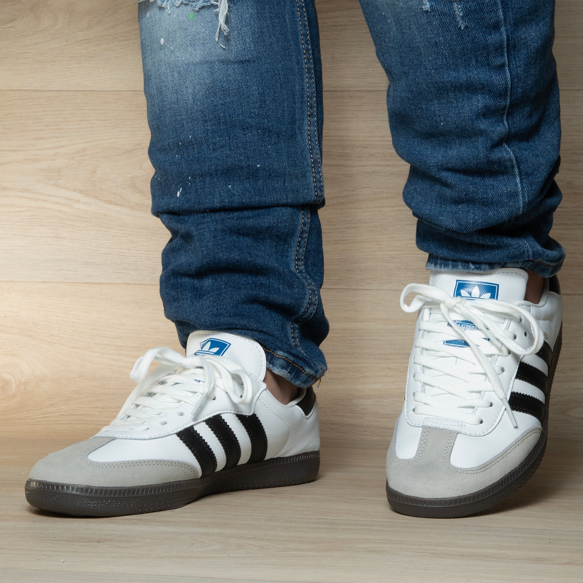 Combina con jeans, pantalones cortos o incluso looks más limpios. El SAMBA OG nunca te deja mal: simple, pero con presencia.