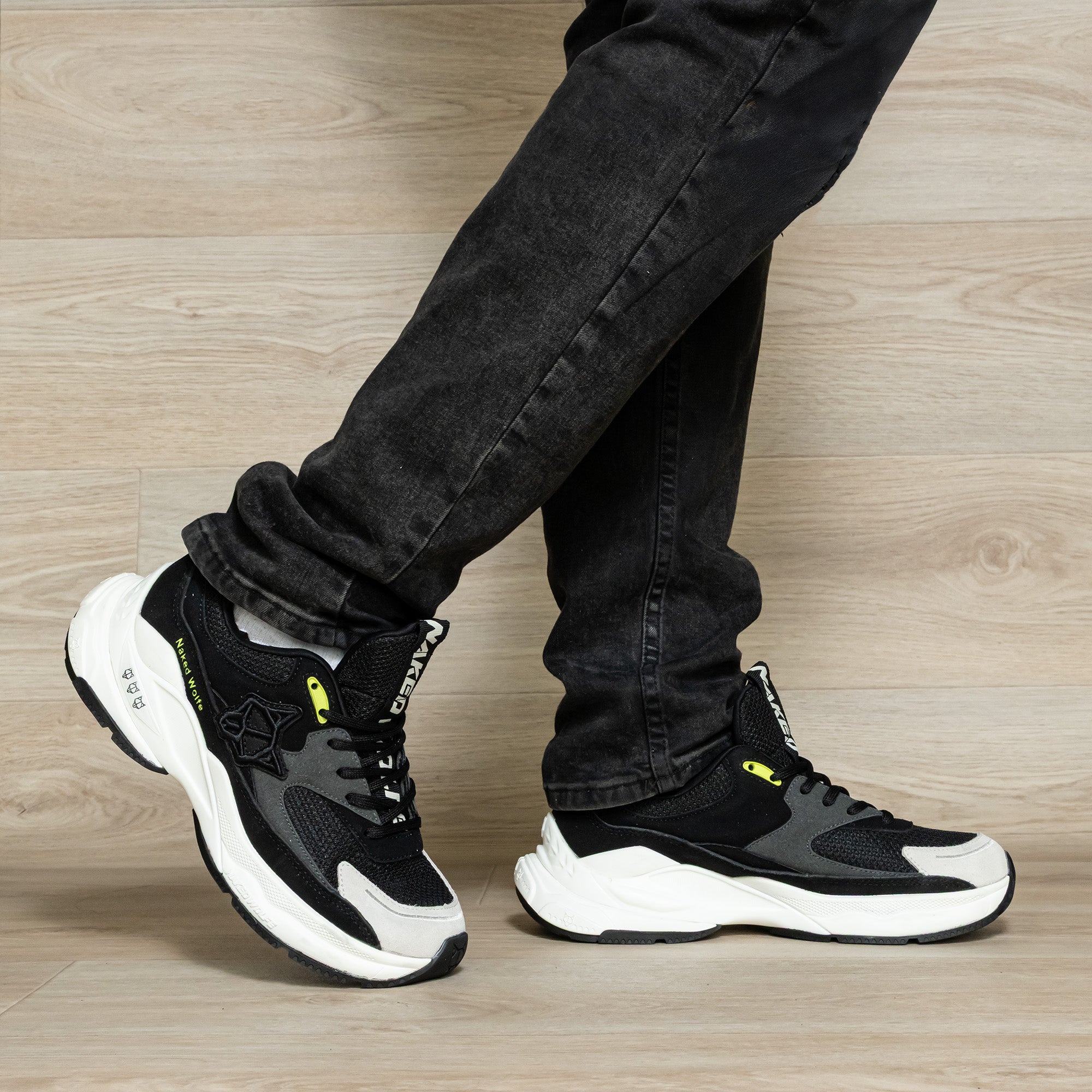 Negro con beige y toques verdes que marcan la diferencia. Callejeros, con presencia, listos para romper la rutina.