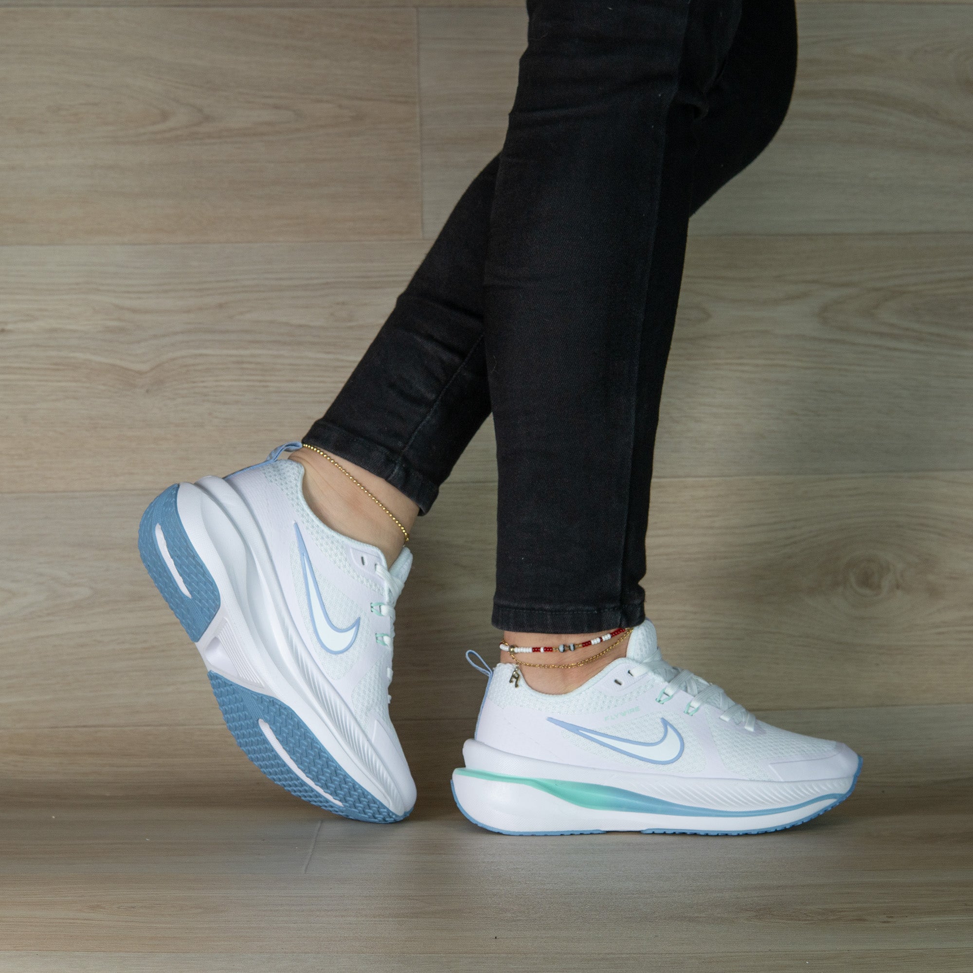 Blanco con detalles en azul agua marina, una combinación limpia, fresca y moderna. Perfecto para quienes pisan con suavidad, pero con estilo firme.