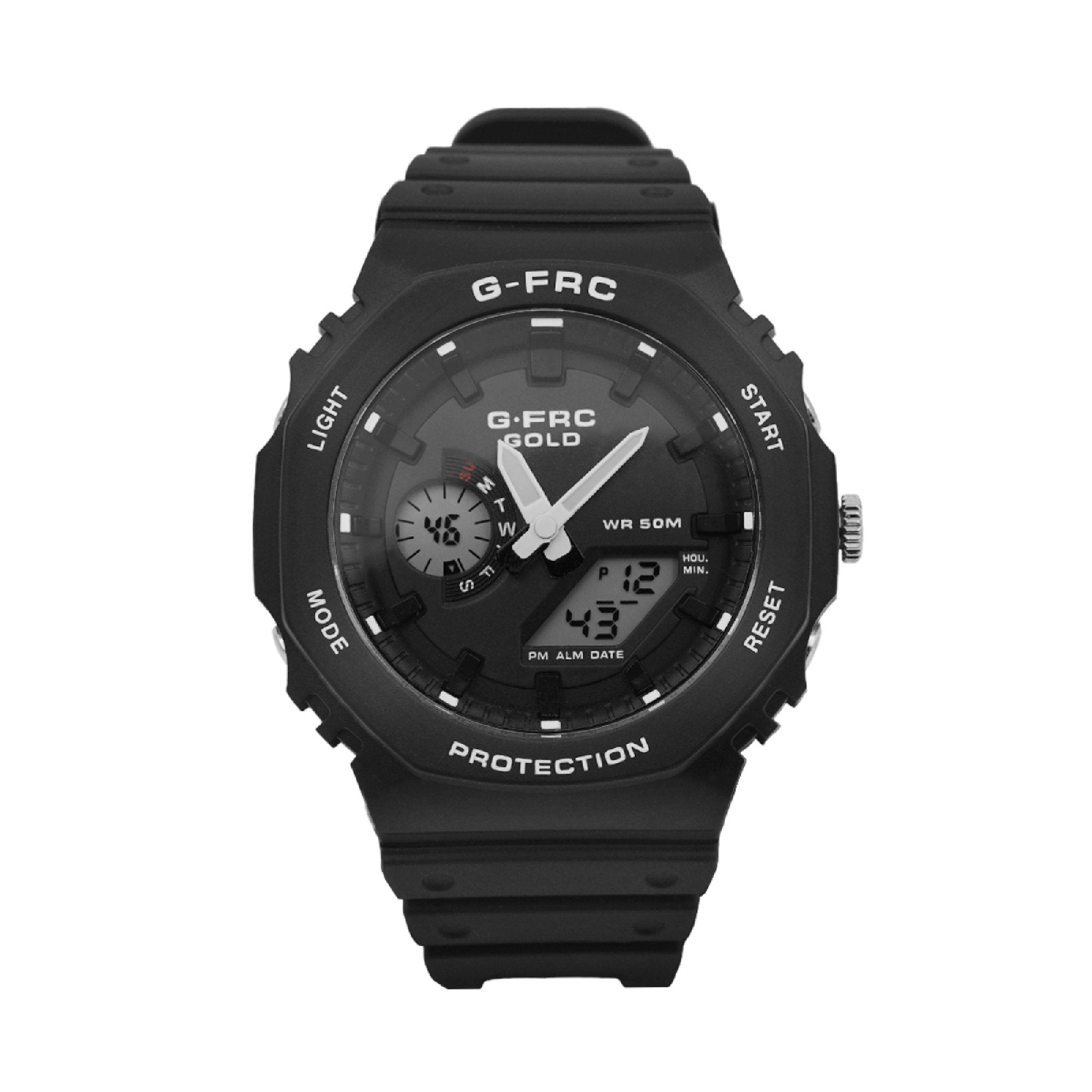 Un compañero confiable en cualquier momento del día. Un reloj práctico y elegante para todas las actividades El reloj incluye su estuche y tarjeta de garantía Color:negro Correa:negra – 20cm Doble hora,alarma,cronometro,fecha y luz led peso:50g