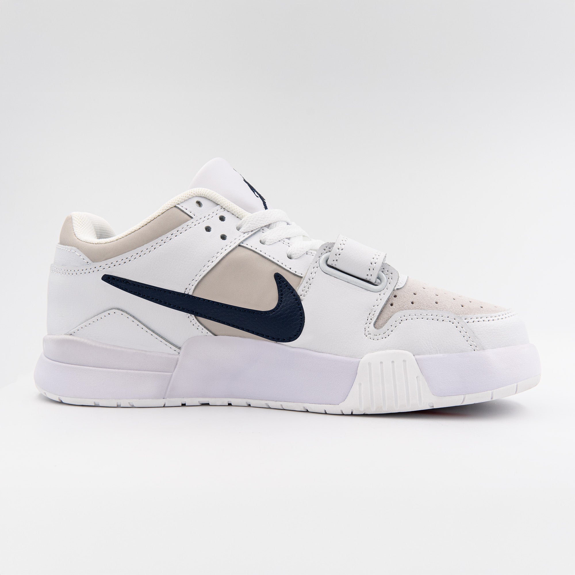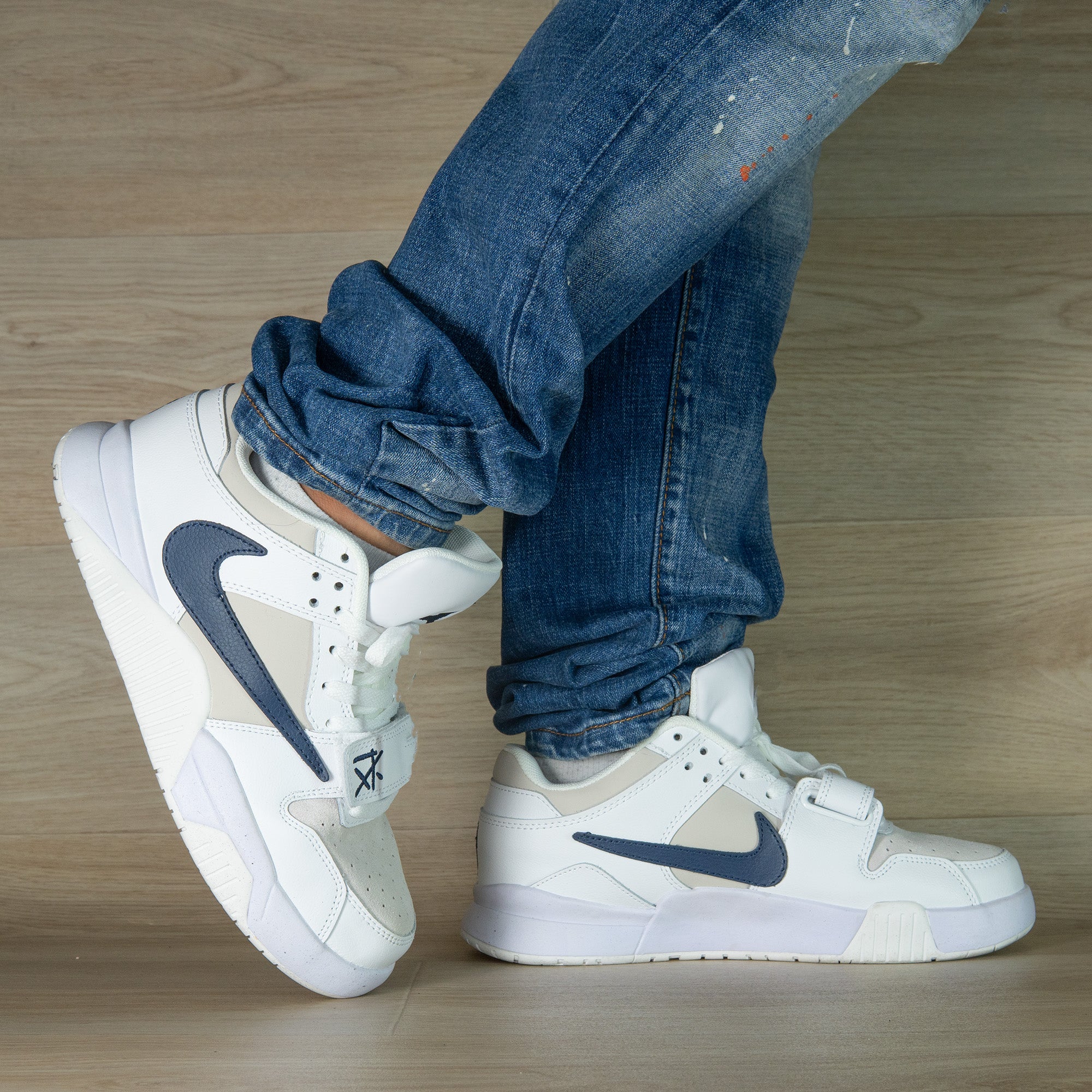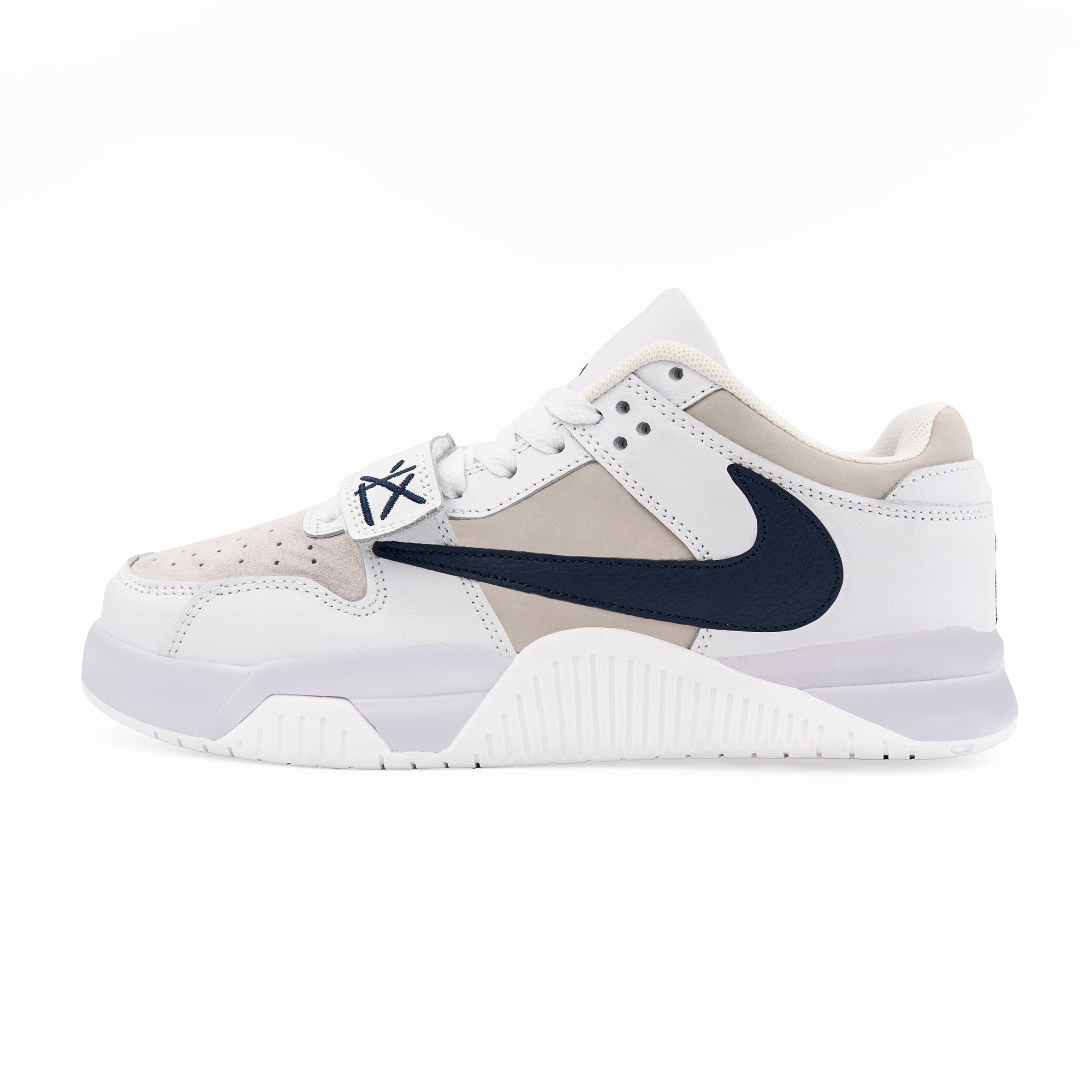 Blanco con el toque rebelde y el logo azul oscuro que marca la diferencia. Un diseño limpio, con ese detalle que cambia todo: el swoosh invertido, icónico y atrevido.
