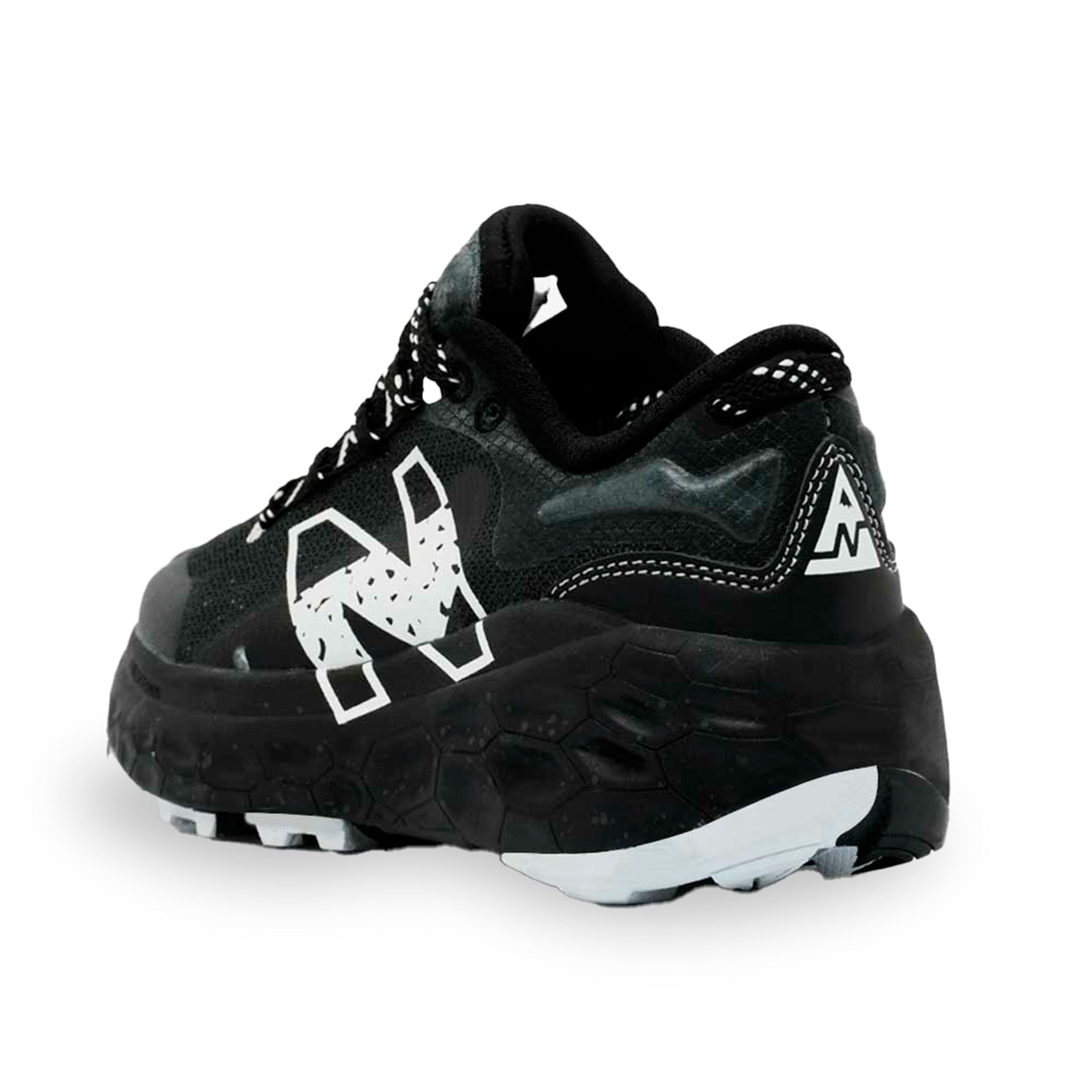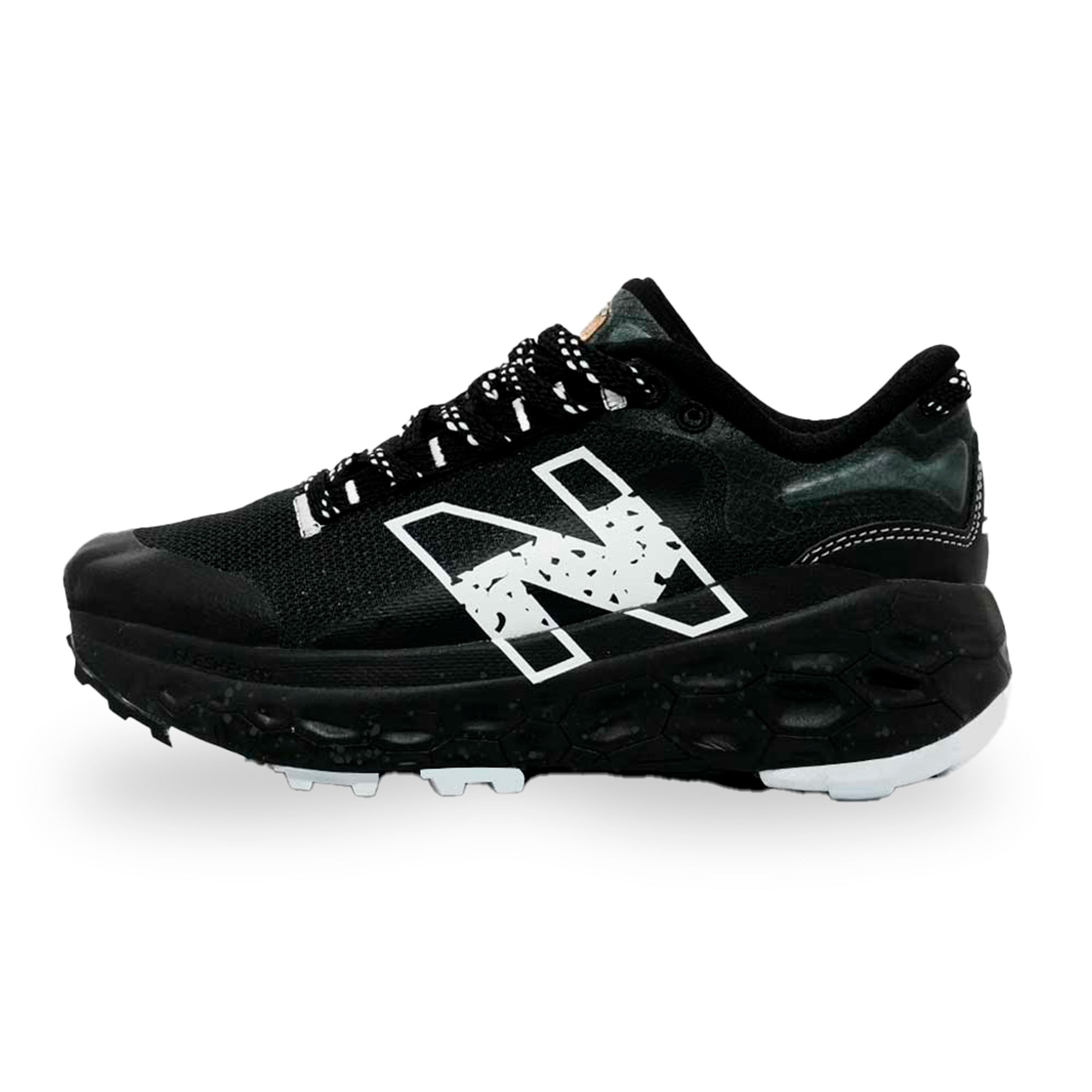 Capellada en negro con detalles blancos que definen su silueta. Logo “N” moteado, cordones bicolor y suela blanca que aporta el balance perfecto.