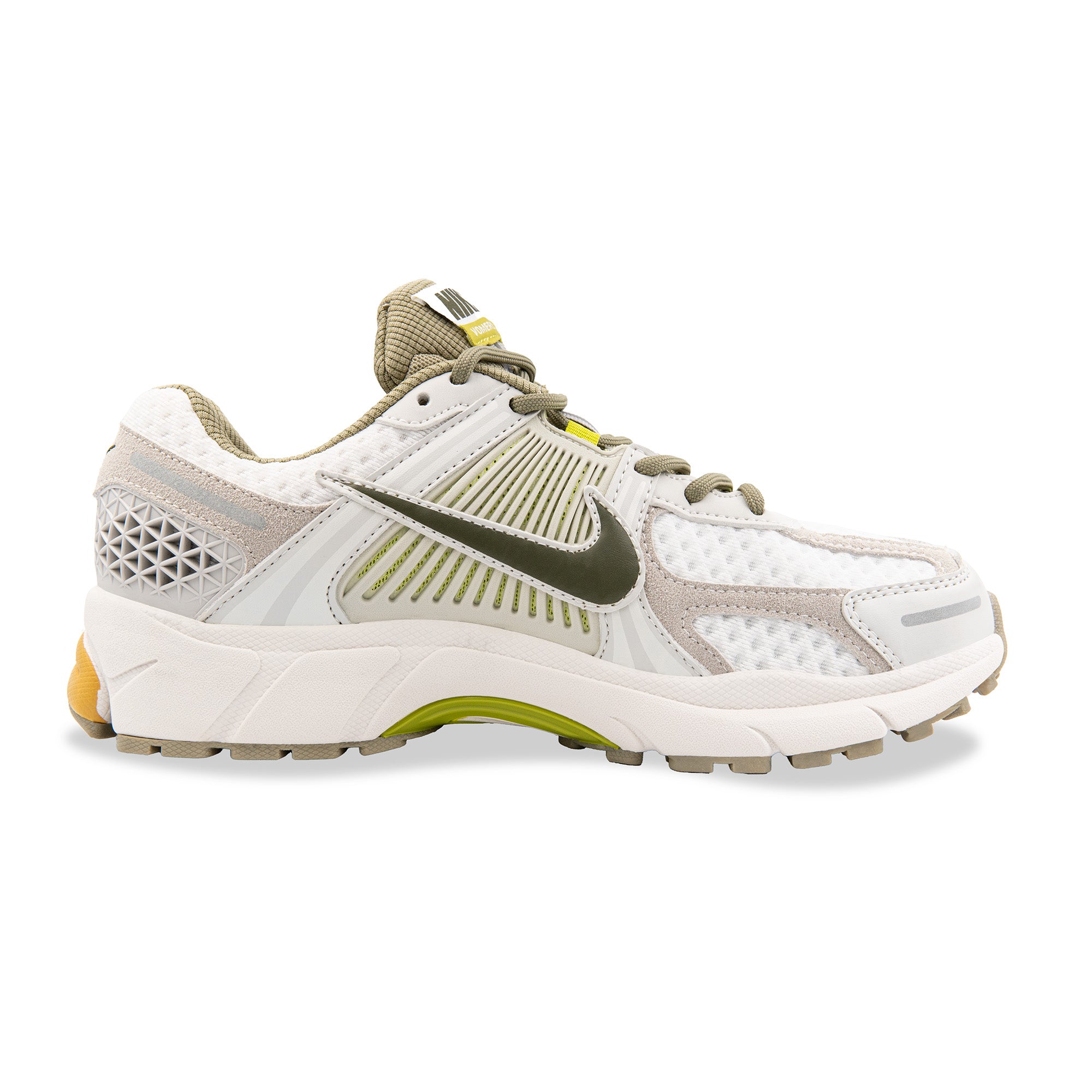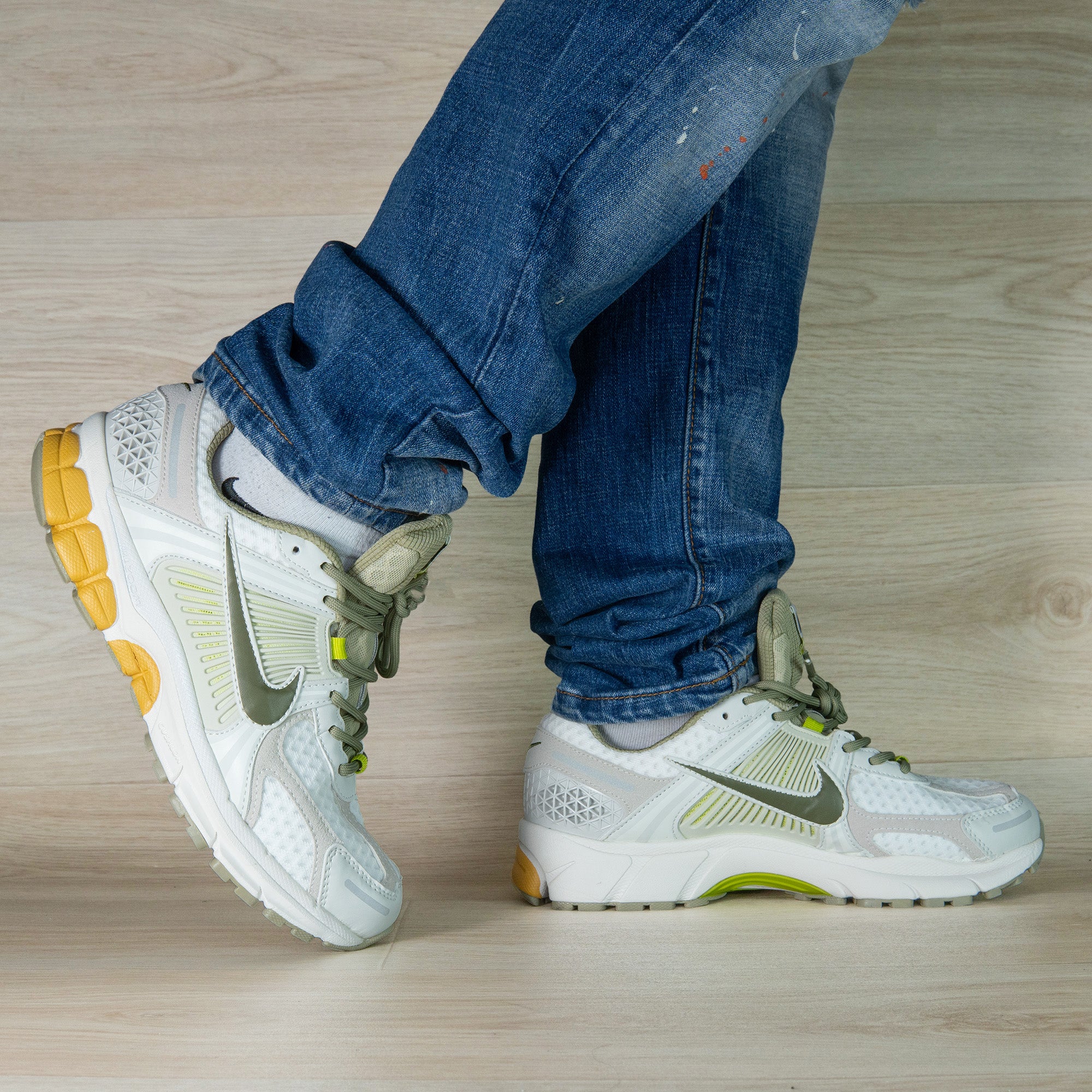 Este par mezcla tonos blanco, gris claro, verde oliva y naranja mostaza para un estilo técnico, versátil y con carácter.