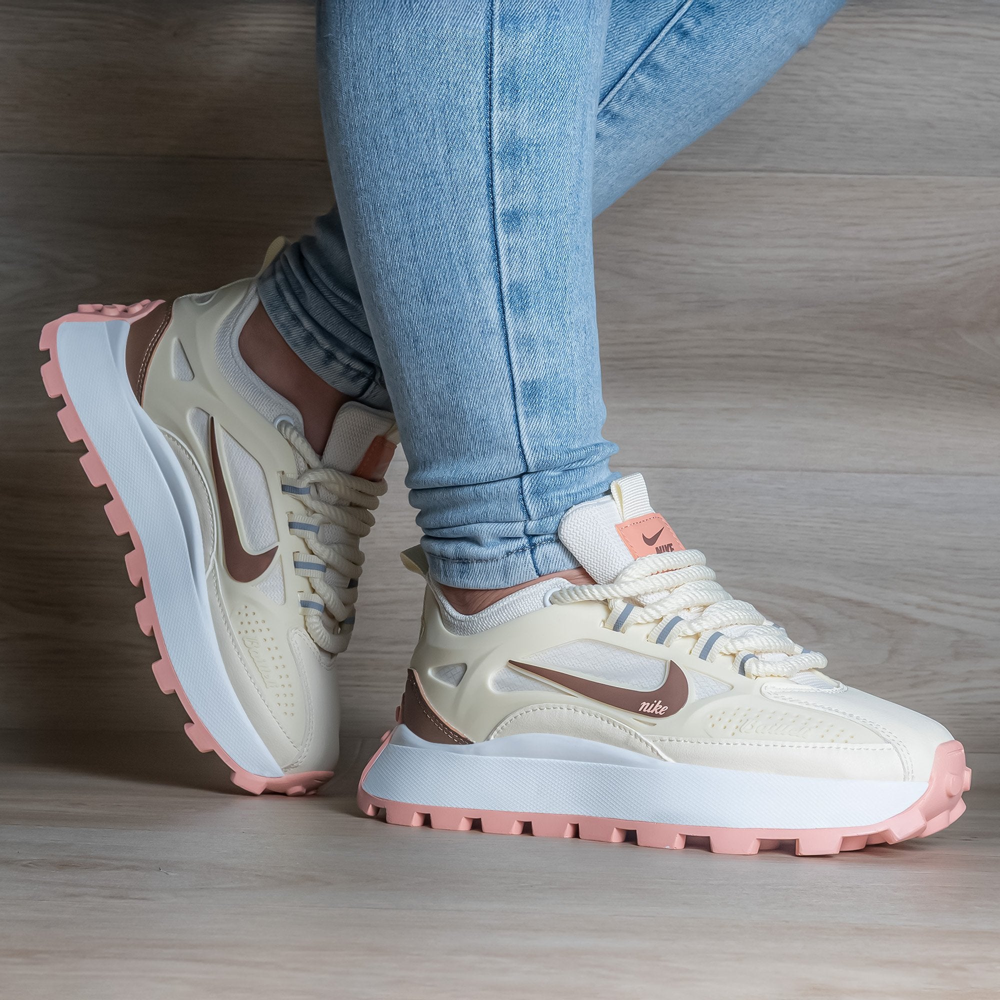 Capellada en tono beige cálido, fabricada en cuero sintético suave y duradero. El Swoosh en café profundo agrega contraste sutil sin romper la armonía. Acolchado interno y lengüeta cómoda para un ajuste envolvente.