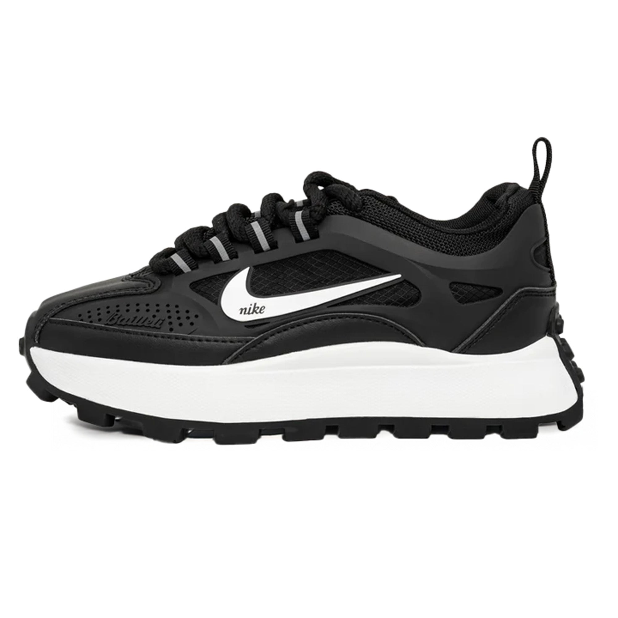 Capellada en cuero sintético negro de acabado mate, suave al tacto y de fácil mantenimiento. El Swoosh blanco resalta con claridad sobre la base oscura, logrando un contraste elegante. Lengüeta acolchada y soporte trasero para pasos firmes.