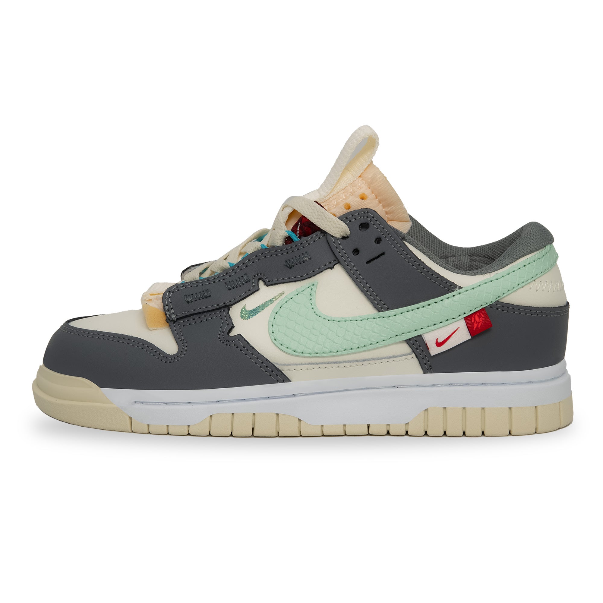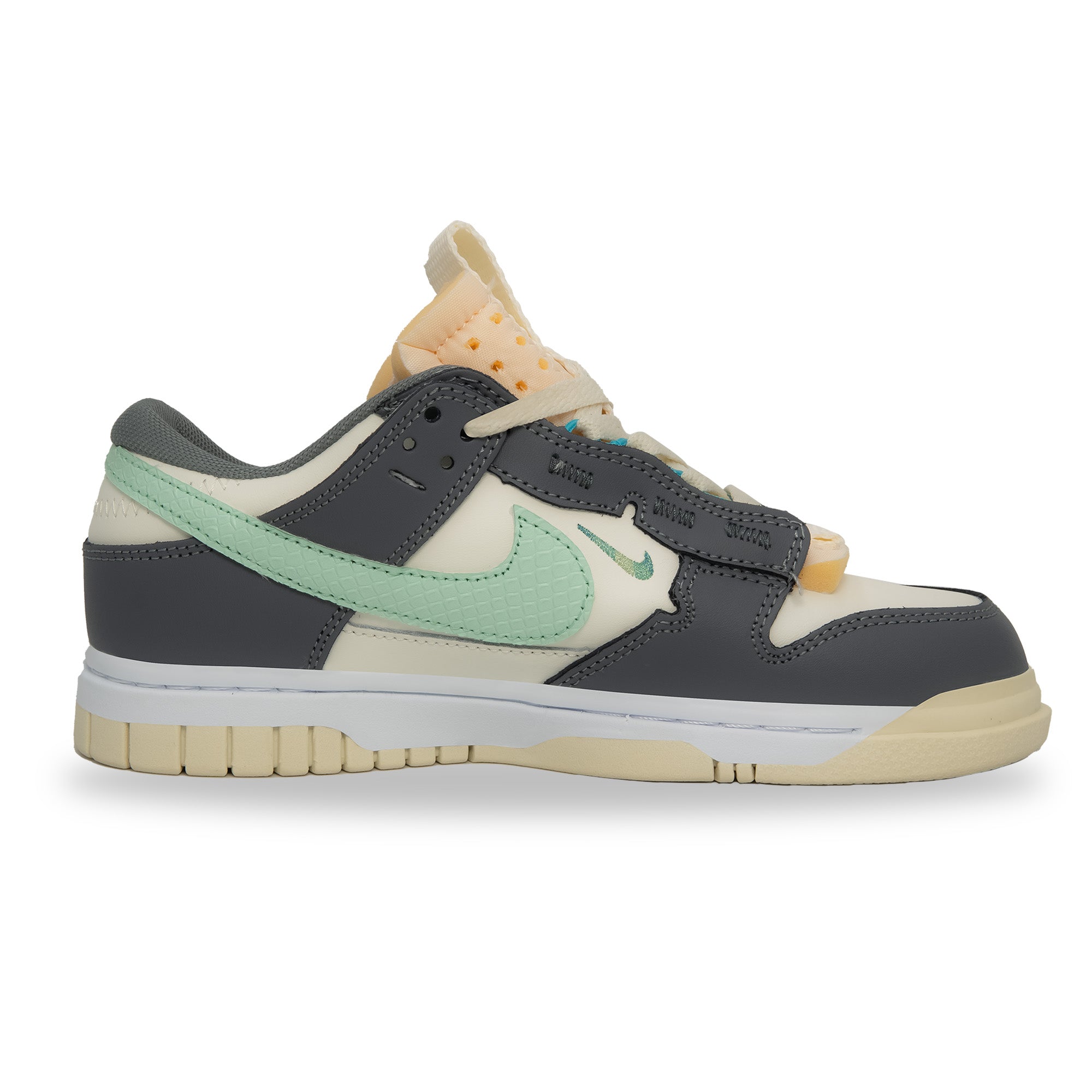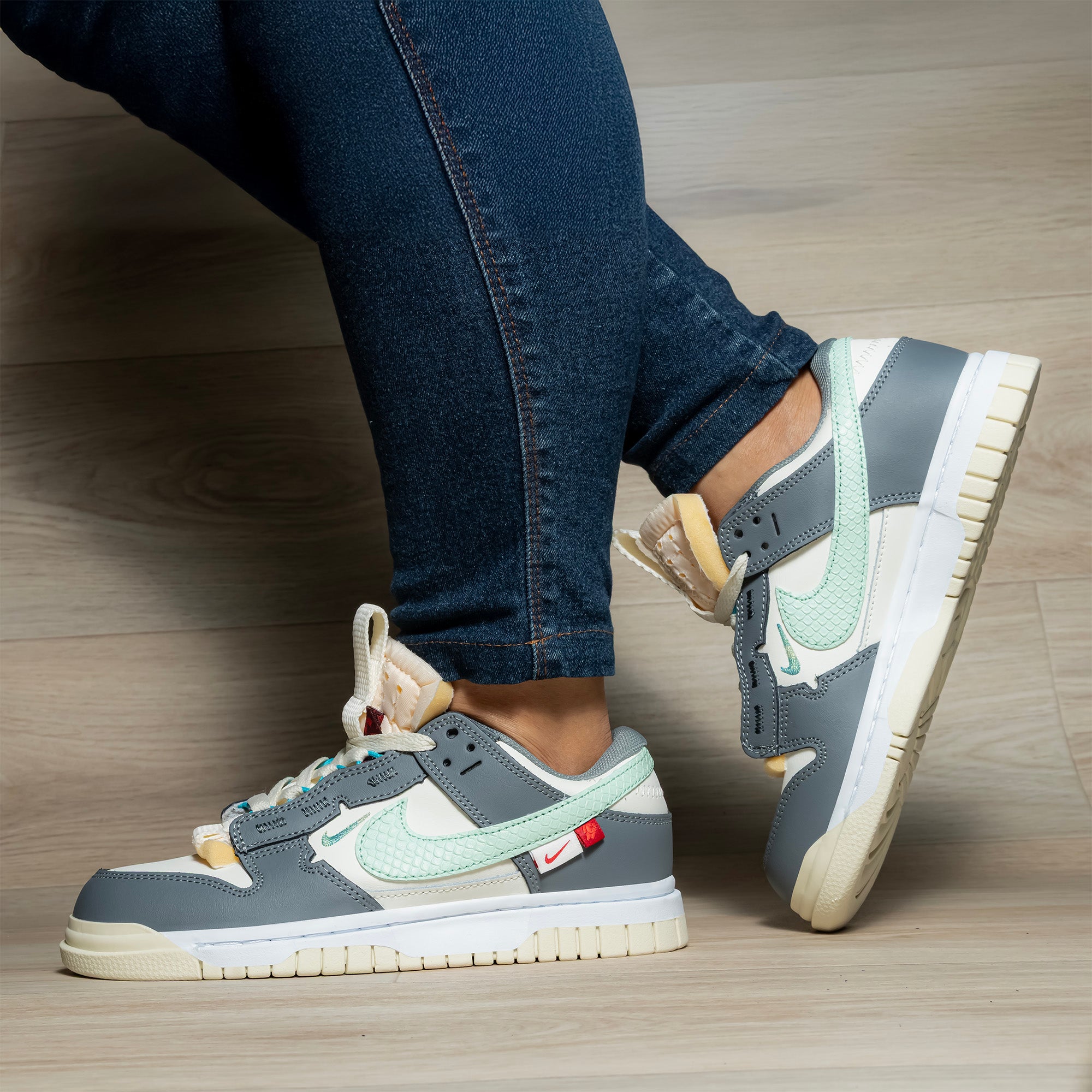 Este NK Jumbo femenino combina tonos gris neutro con detalles verdes vibrantes que aportan energía y estilo.