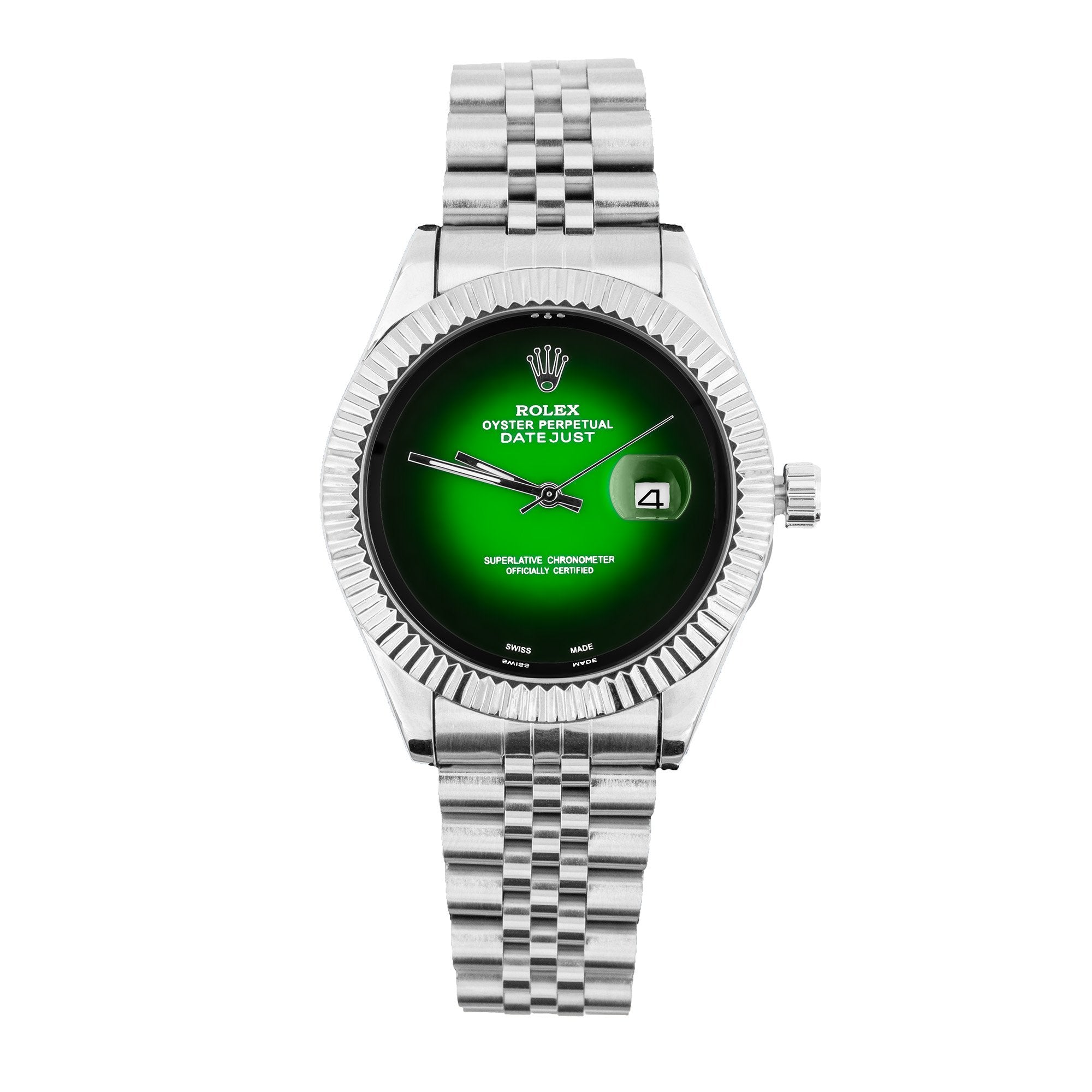 Una eleccion elegante y sutil para tus outfits lleva la mejor calidad y estilo aquí Color: plateado tablero verde Correa: plateada- 18cm Analogo y fecha peso:106g