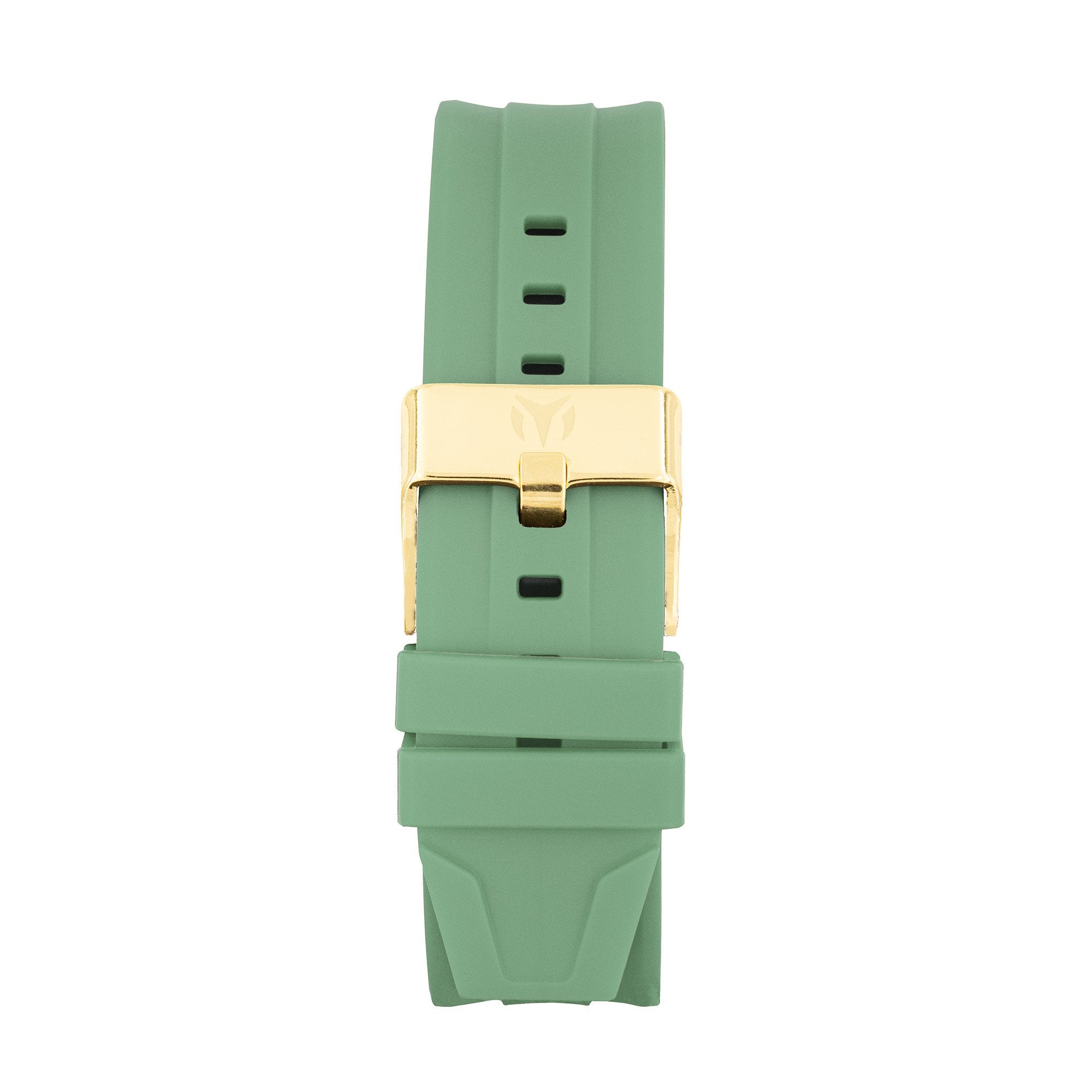 Un compañero confiable en cualquier momento del día. Un reloj práctico y elegante para todas las actividades Color: verde y dorado Correa: goma verde- 20cm analogo y fecha peso:87g